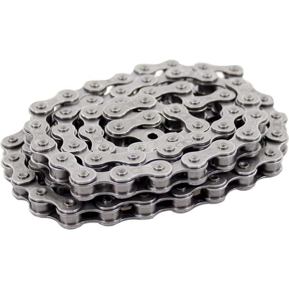 De Union Ketting heeft een breedte van 1/2 inch en een dikte van 1/8 inch. Het is een standaardketting die vaak wordt gebruikt op fietsen met een enkelvoudig tandwiel (1-speed). De ketting is geschikt voor verschillende fietsstijlen, waaronder stadsfietsen, cruiserfietsen en fixie-fietsen. De 1/2X1/8 maatvermelding verwijst naar de afmetingen van de schakels van de ketting. De 1/2 inch verwijst naar de breedte van de schakels, terwijl de 1/8 inch verwijst naar de dikte van de schakels. Het is belangrijk om ervoor te zorgen dat de ketting compatibel is met de tandwielen en tandwielsysteem van je fiets.