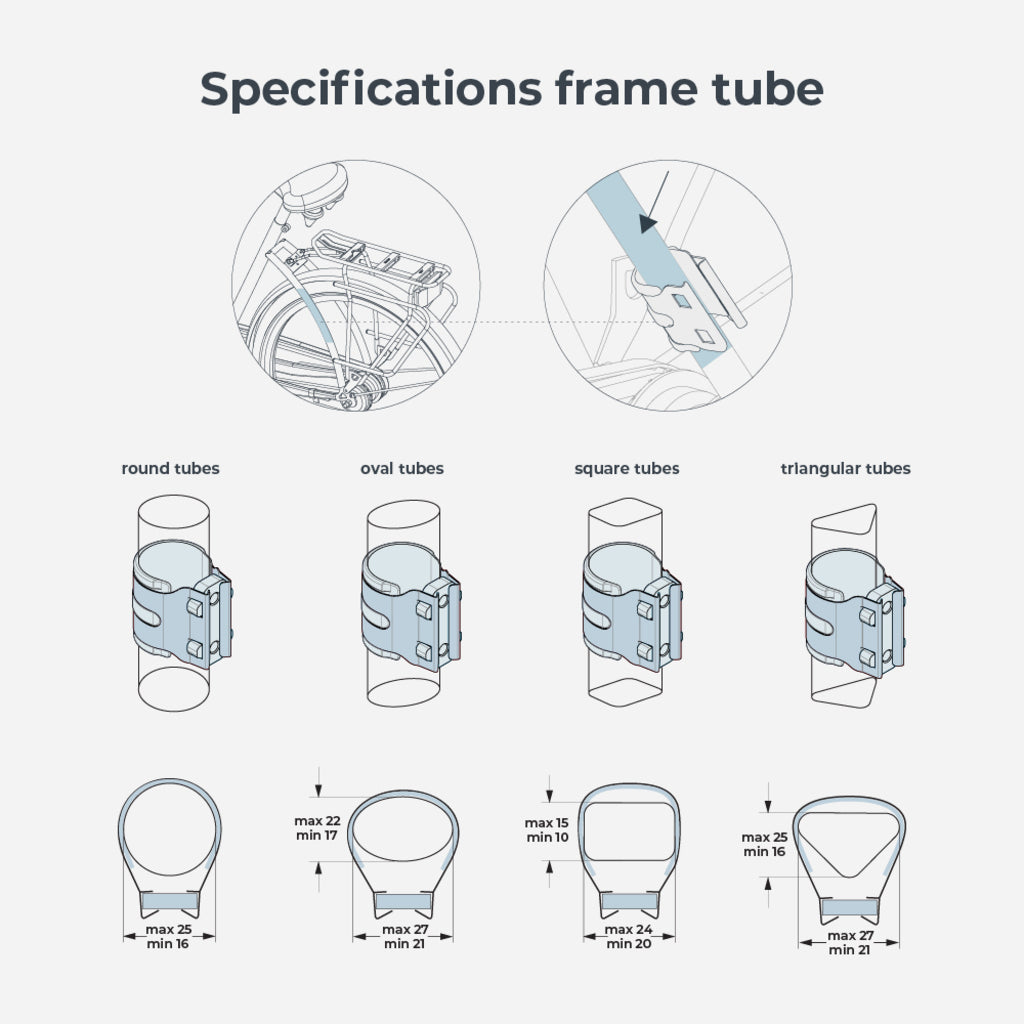 - ⌀ Achtervork voor voetsteunen: 16-25 mm