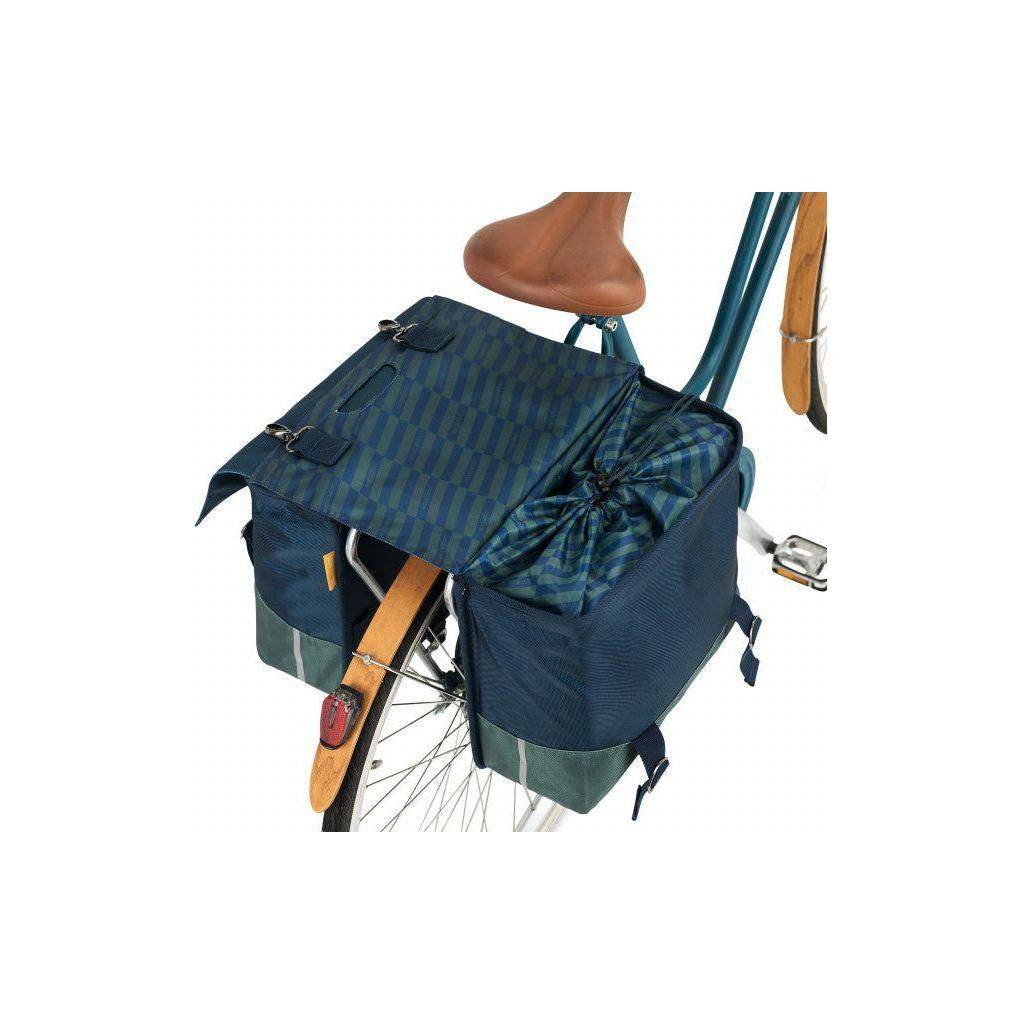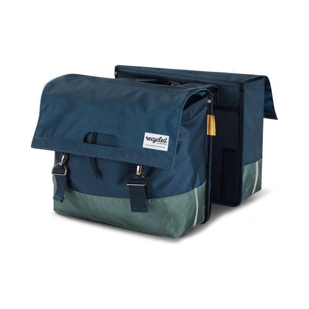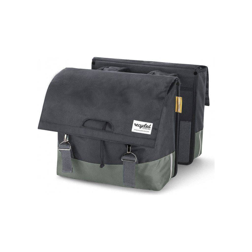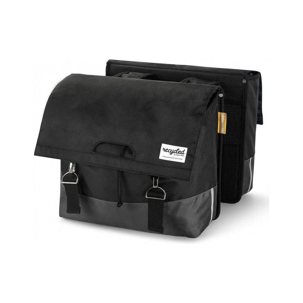 Urban Proof 40L dubbele fietstas is een sterke tas met een verstevigde rug en bodem, gemaakt van gerecycled PET materiaal (RPET). De tas heeft twee ruime opbergvakken met een totale inhoud van 40 liter. Hij is zo gemaakt dat je snel en eenvoudig de tas kan openen en sluiten met de chromen haken. De tas is gemaakt van waterafstotend RPET en heeft aan de binnenkant een waterbestendige voering als extra bescherming voor jouw spullen. Met de daarvoor bestemde riempjes is de dubbele fietstas eenvoudig aan jouw bagagedrager te bevestigen.
