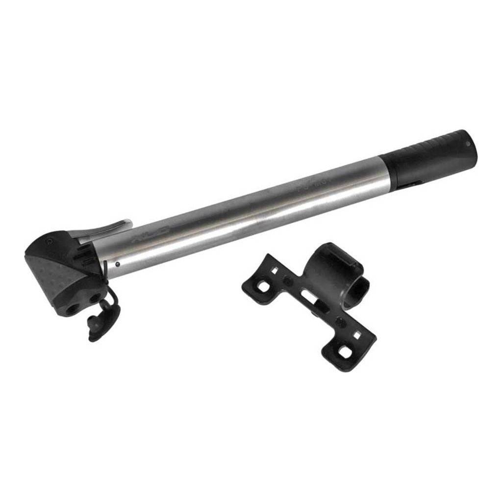 De XLC Alpha Mini PU-M01 aluminium handpomp is voorzien van een dubbele pompkop die compatibel is met elk type ventiel. Hij wordt geleverd met een universele houder en een elastische band, zodat hij gemakkelijk aan elke fiets kan worden bevestigd.