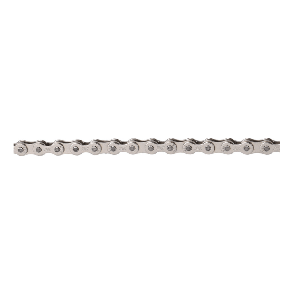 De XLC CC-C21-ketting is een betrouwbare en duurzame ketting voor 1-speed aandrijfsystemen. Met een breedte van 1/8 inch en 136 schakels biedt deze ketting een solide en precieze schakelprestatie. De zilveren kleur geeft een stijlvolle uitstraling aan je fiets.Deze ketting is geschikt voor verschillende fietsmodellen en -typen met een 1-speed aandrijfsysteem. Of je nu een stadsfiets, fixie of singlespeed-fiets hebt, de XLC CC-C21-ketting zorgt voor betrouwbare krachtoverdracht en soepele schakelingen. Met 136 schakels biedt deze ketting voldoende lengte om aan de behoeften van verschillende framematen en configuraties te voldoen. De hoogwaardige materialen zorgen voor duurzaamheid en een lange levensduur, zelfs onder zware omstandigheden. Upgrade je fiets met de XLC CC-C21-ketting en geniet van een soepele en betrouwbare rit. Deze ketting biedt goede prestaties en langdurige functionaliteit, zodat je met vertrouwen en comfort kunt fietsen.
