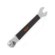 De XLC pedaal- en crankmoersleutel TO-S19 heeft een dubbele functie. De 15mm steeksleutel is perfect voor het verwijderen en monteren van een breed scala aan pedalen en heeft dankzij het lange handvat voldoende hefboomwerking. Aan de andere kant zit een tweezijdige dopsleutel met een kop van 14 en 15 mm voor het verwijderen van cranks met vierkante en externe schroefdraad. De easy-grip vinyl coating beschermt je handen tijdens het gebruik en houdt hem in topconditie wanneer hij in de gereedschapskist zit.