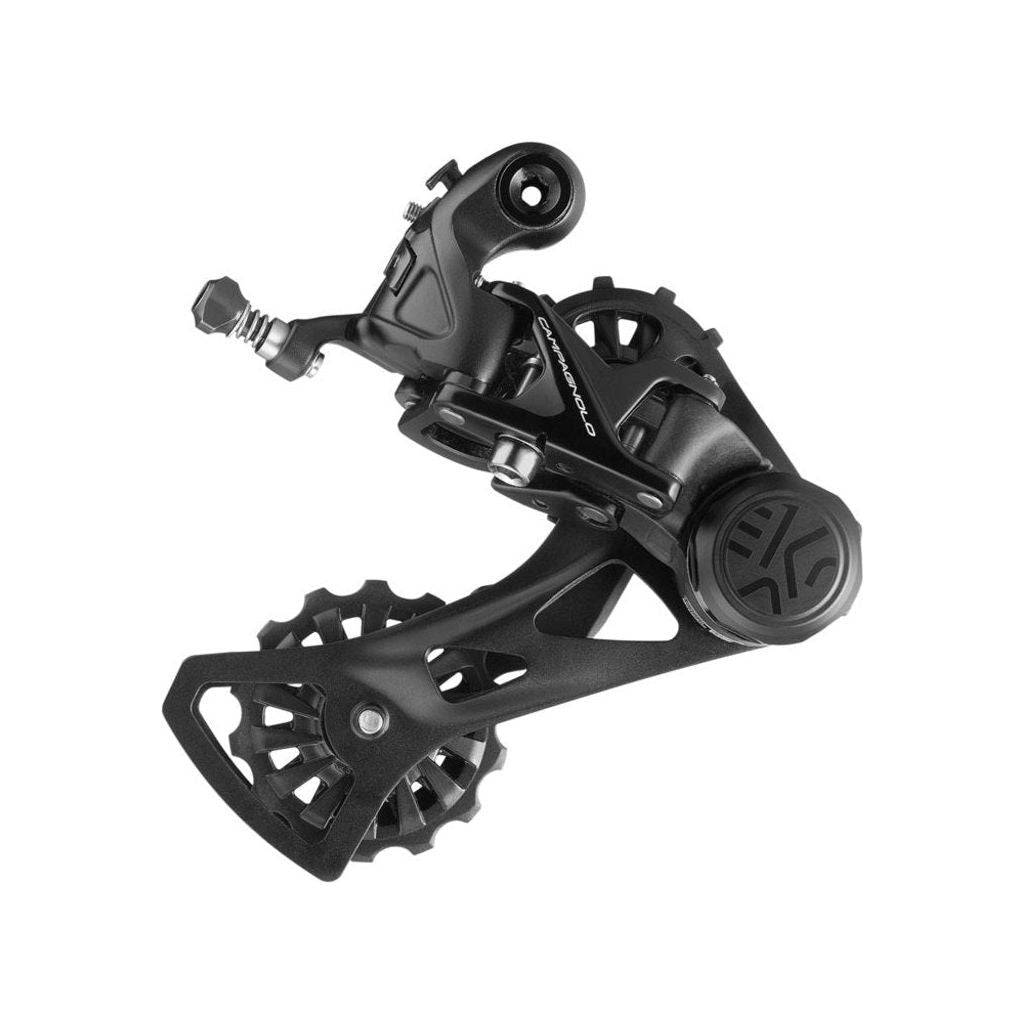 Het is dankzij Campagnolo's onvergelijkbare ervaring en opmerkelijke vindingrijkheid, verworven en verfijnd tijdens meer dan 80 jaar innovatie, dat de Ekar achterderailleur is ontworpen. Hoewel de Ekar-achterderailleur de oplossingen heeft geërfd die het resultaat zijn van onderzoek en die sinds de Super Record zijn toegepast op onze groepen, is het gloednieuwe ontwerp echter specifiek gemaakt voor grind. Het 1x-systeem en de 13 versnellingen garanderen de efficiëntie, en het gebruik van het rondsel met 9 tanden maakt het mogelijk om een volledig scala aan versnellingen aan te bieden met korte en op gelijke afstanden schakelen en constante cadansniveaus. De technologie, het ontwerp en de materialen zijn zo bestudeerd dat ze voldoen aan de specifieke prestatie-eisen van offroad- en gravelliefhebbers. De combinatie van snel, nauwkeurig en betrouwbaar schakelen, gecombineerd met maximale kettingveiligheid, lichtheid, duurzaamheid en stevigheid, geeft hem toegang tot de offroad-wereld. Het ontwerp van de achterderailleur, met een middellange kooi, is compatibel met de verschillende tandwielmaten op alle drie de cassette-opties, van 9-36 tot 10-44, wat ideaal is voor alle grindeisen. Het 2D-traject van het parallellogram is speciaal ontworpen voor het Ekar 1x-systeem, dus de achterderailleur voert nauwkeurige mechanische bewegingen uit om alle 13 tandwielen optimaal te benutten. De rollen met een gedifferentieerd aantal tanden garanderen een perfecte werking en optimaal onderhoud van de ketting om veiligheid en gemoedsrust te garanderen, ongeacht de route die u neemt. De trekhaakkoppeling, permanent ingeschakeld voor betrouwbaardere kettingretentie en stillere werking, kan worden vergrendeld om het demonteren van het wiel te vergemakkelijken. Er zijn meer dan 70 onderdelen ontworpen voor de enkele Ekar achterderailleur. Koolstofvezelversterkt polyamide en geanodiseerde 7075- en 6082-legeringen worden op ingenieuze wijze gebruikt in het lichaam en de katrolversnelling van de Ekar-achterderailleur om de beste prestaties op het gebied van sterkte, duurzaamheid en lichtheid te bereiken, een betrouwbare werking op de lange termijn te garanderen en een uitstekende weerstand tegen schokken te garanderen , zand en stof van grindroutes. Bovendien zijn de schroeven gemaakt van roestvrij staal om langer mee te gaan in de zwaarste omstandigheden.