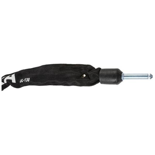 De diameter van de sluitingen is 5,5 mm en de gehard stalen plug-in pin is 10 mm dik. Hij heeft een lengte van 130 cm en heeft een zwarte polyester hoes om de fiets te beschermen tegen krassen.