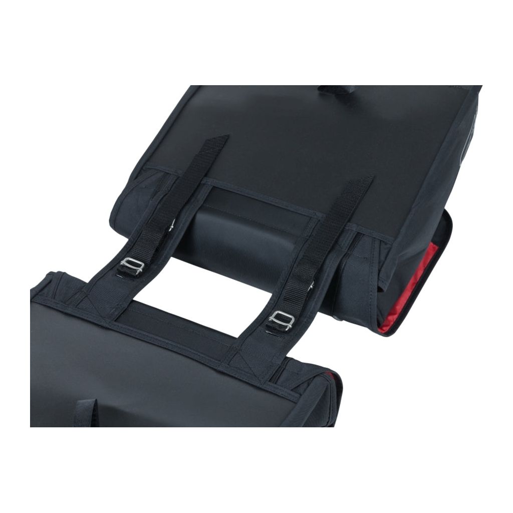 Dubbele fietstas met sportieve uitstraling. Deze tassen staan fraai op sportieve hybride fietsen. Het hoofdcompartiment wordt afgesloten met een trekkoord. In het hoofdvak zitten elastische banden om bijvoorbeeld flessen vast te zetten. Op de voor- en achterkant is reflectie geplaatst.