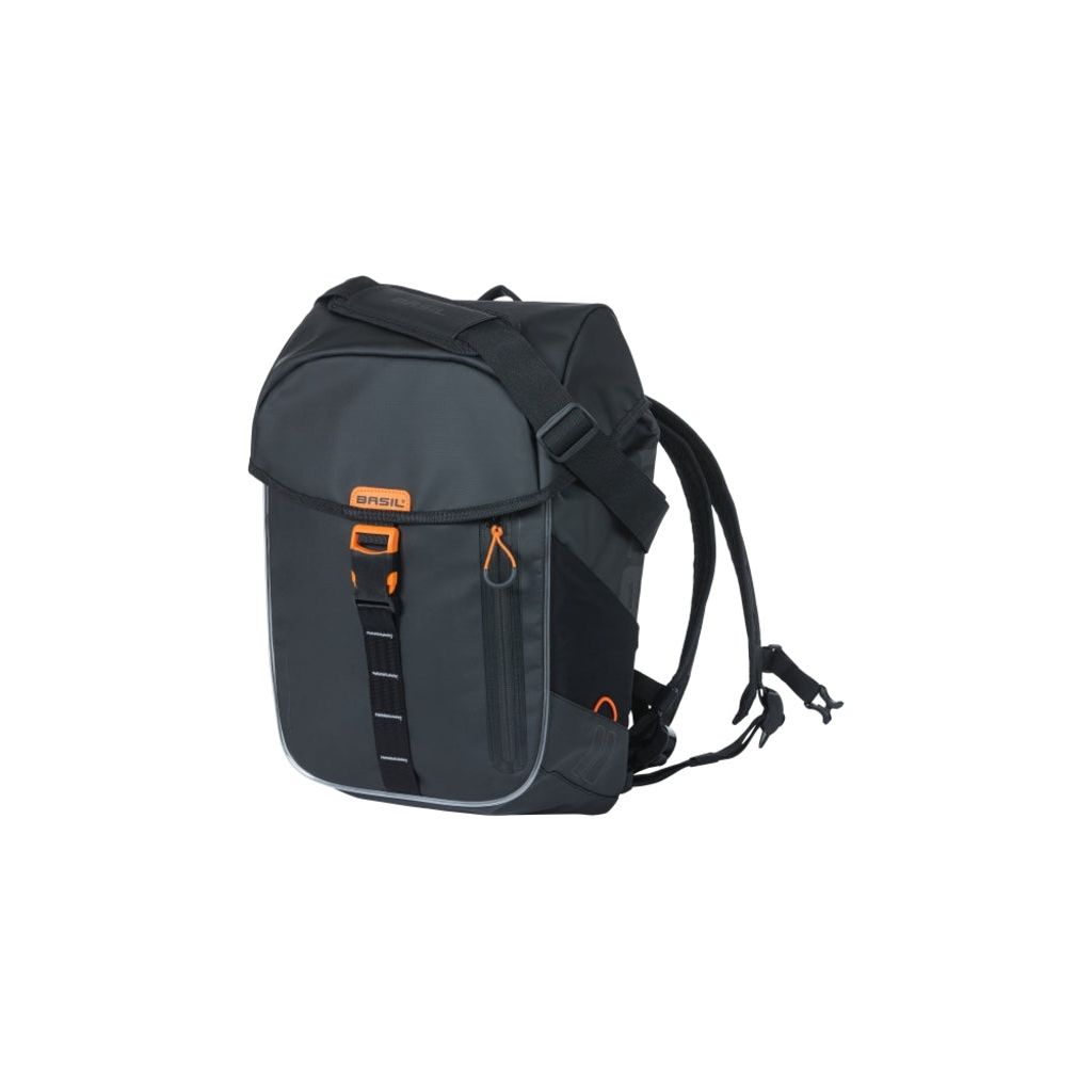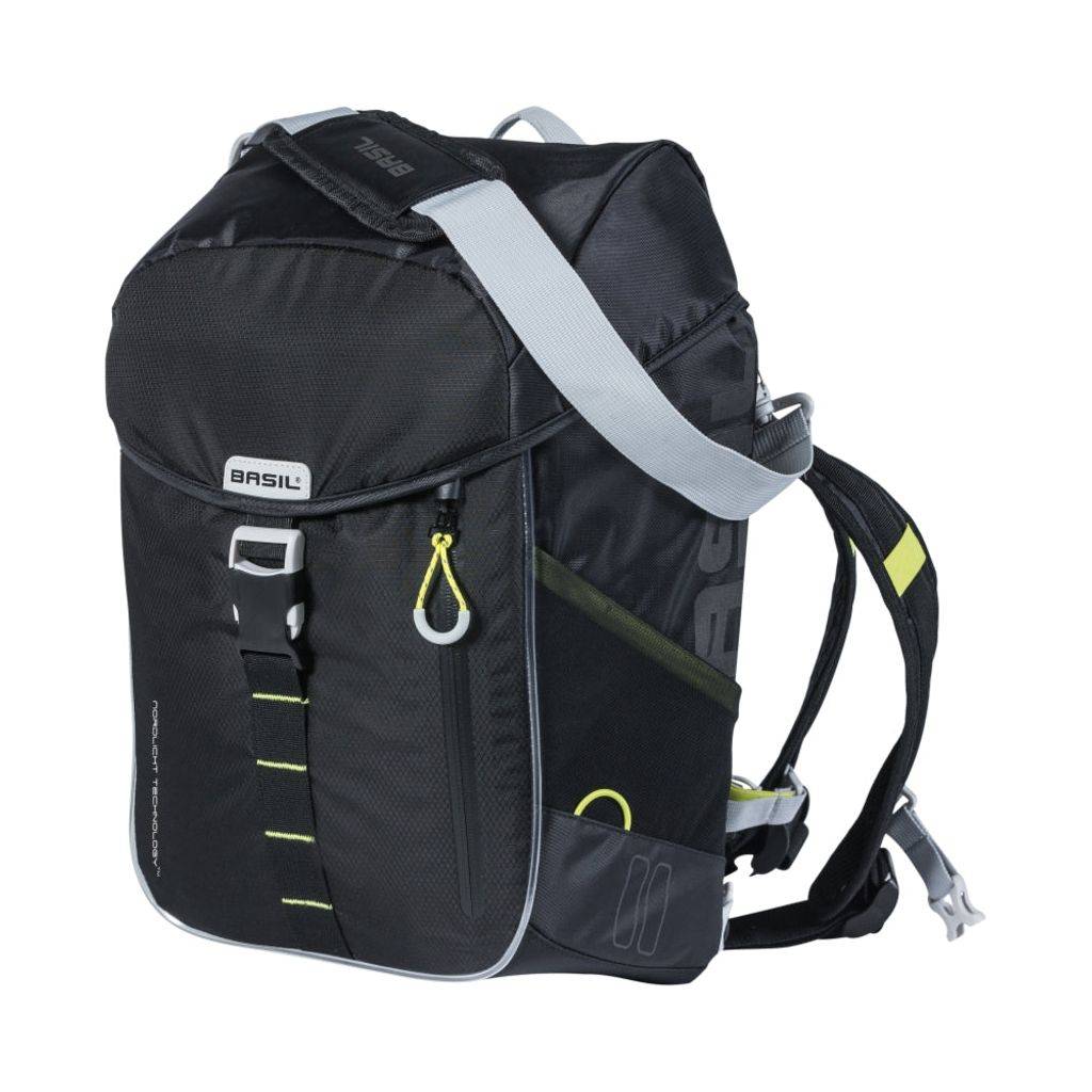 De Basil Daypack Nordlicht is een veelzijdige fietsrugtas die op vijf manieren kan worden gedragen. Met gewatteerde achterzijde en schouderbanden voor comfortabel dragen. Het Hook-On systeem maakt eenvoudige bevestiging aan de bagagedrager mogelijk, zelfs op elektrische fietsen, waardoor zweten wordt voorkomen en stabiliteit wordt verbeterd. Deze waterdichte tas met roltopsluiting beschermt de inhoud tegen regen. Diverse vakken bieden opbergruimte voor boeken, smartphone en pennen. Nordlicht Technology zorgt voor betere zichtbaarheid in het donker met een geïntegreerde LED-strip aan de voorzijde die is te bedienen met een drukknop.