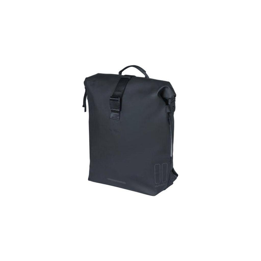 Met de Basil SoHo Nordlicht fietsrugzak ben je op alles voorbereid. Deze fietstas is namelijk voorzien van allerlei slimme functies. Zo heeft de tas een geïntegreerde LED-strip waardoor je beter zichtbaar bent in het donker. Daarnaast is de tas waterdicht (IPX3), waardoor er geen druppel water je tas inregent. De getapete naden en de roltopsluiting dragen hieraan bij. De roltopsluiting bevestig je aan de zijkanten van de tas. Gemaakt van mat PU-materiaal dat erg zacht aanvoelt.