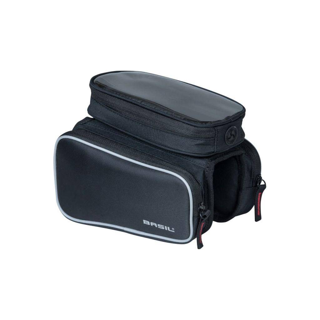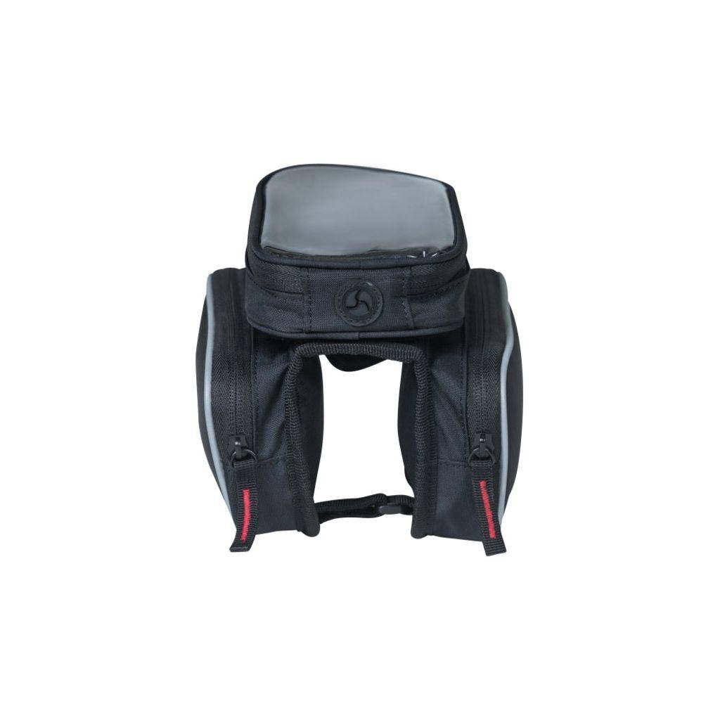 De Basil Sport Design is een dubbele Top Tube-frametas voor dames- en herenfietsen. De sportieve tas met een inhoud van 1,5 liter is er in de kleur zwart.