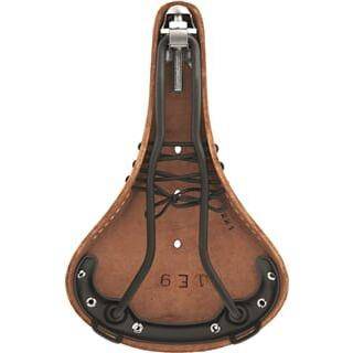 De Brooks B17 is het populairste zadel uit de uit de Brooks collectie, de Brooks B17 is een allrounder die ideaal is voor lange afstand tourfietsers en zelfs mountainbike of race gebruik. De Brooks B17 verscheen voor het eerst in de 1898 catalogus en wordt vandaag de dag nog steeds ongewijzigd gevoerd. Het model is verkrijgbaar in uitvoeringen die specifiek zijn voor heren en dames.De Brooks B17 is er daarnaast in een aantal verschillende uitvoeringen. De standaard modellen zijn voorzien van zwarte stalen rails, de B17 Special heeft koperen klinknagels een een verkoperd onderstel en de B17 Titanium heeft een titanium onderstel. Zowel de B17 Special als de Brooks B17 Titanium zijn voorzien van met de hand gehamerde koperen klinknagels.