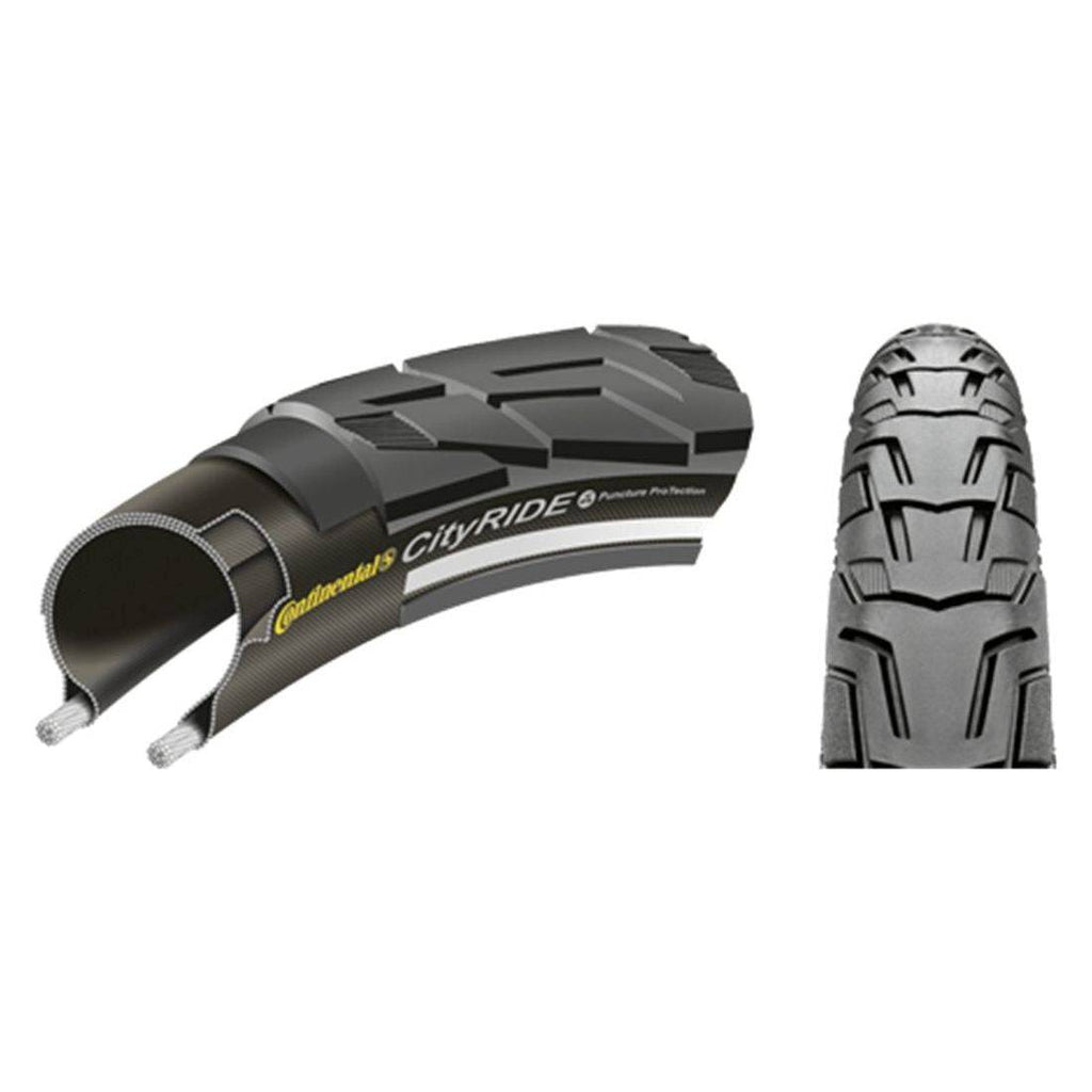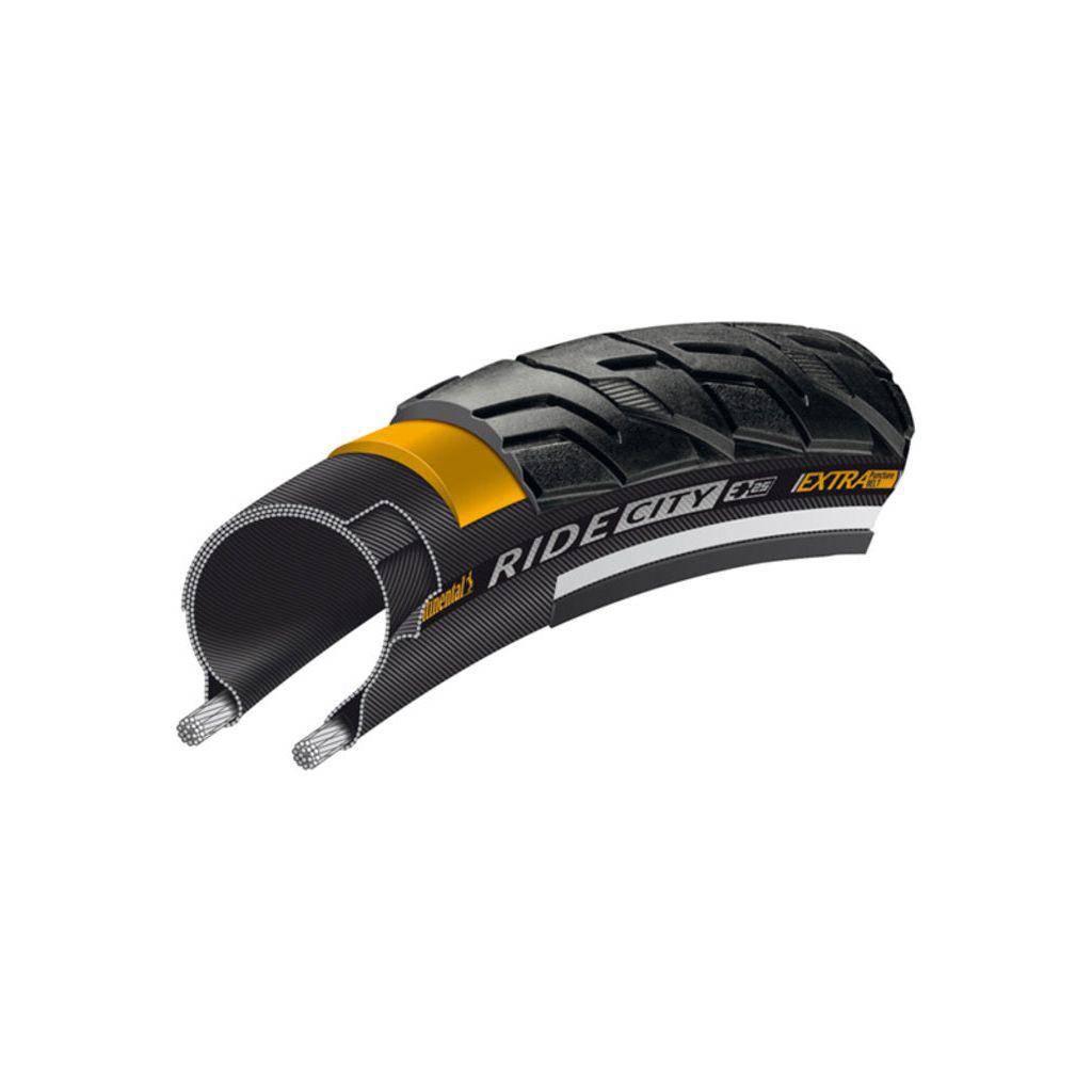 De Continental Ride City geeft elke stadsfiets een moderne look. Deze band is uitgerust met een stevig karkas en een extra stevige rubberen bescherm laag en beschikt daardoor over een lange levensduur. De band is tevens voorzien van de volgende technologieën: