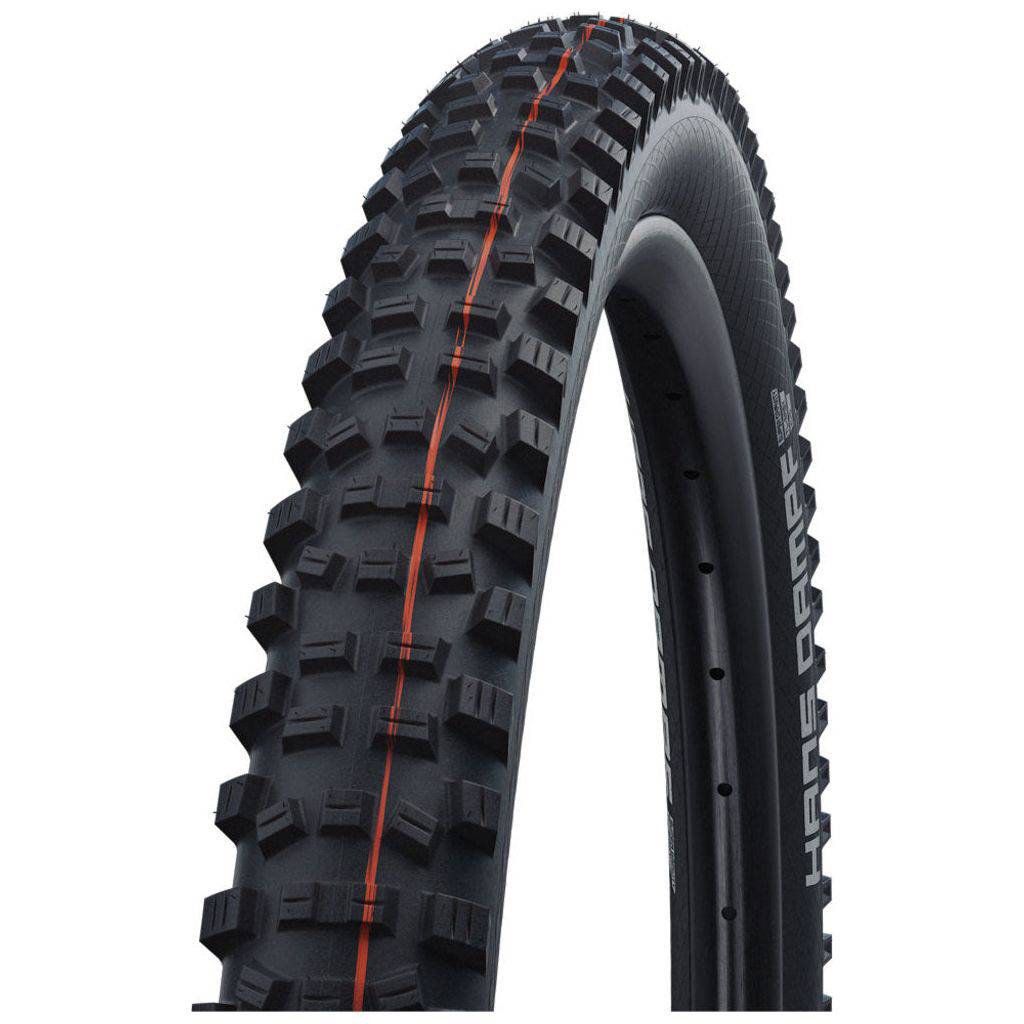 De Schwalbe Hans Dampf is de alleskunner voor all mountain en enduro gebruik. Alles wat het plezier bij de E-Enduro nog groter maakt heeft Hans Dampf in petto. Voor een geweldig rijgedrag en de hoogste lekbescherming op veeleisende trails, zowel uphill als downhill. De precieze positionering van de noppen biedt veel controle, terwijl de combinatie van grote en kleine schoudernoppen de fietser optimale grip biedt op uiteenlopende ondergronden. Gleufjes in de noppen zorgen ervoor dat modder en vuil effectief wordt afgevoerd.