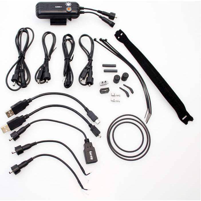 Busch + Müller universele oplader E-werk, door middel van de naafdynamo bijna alles op te laden zoals GSM ,GPS Ipod e.d. tussen 2,8v en 13,3volt incl div stekkers