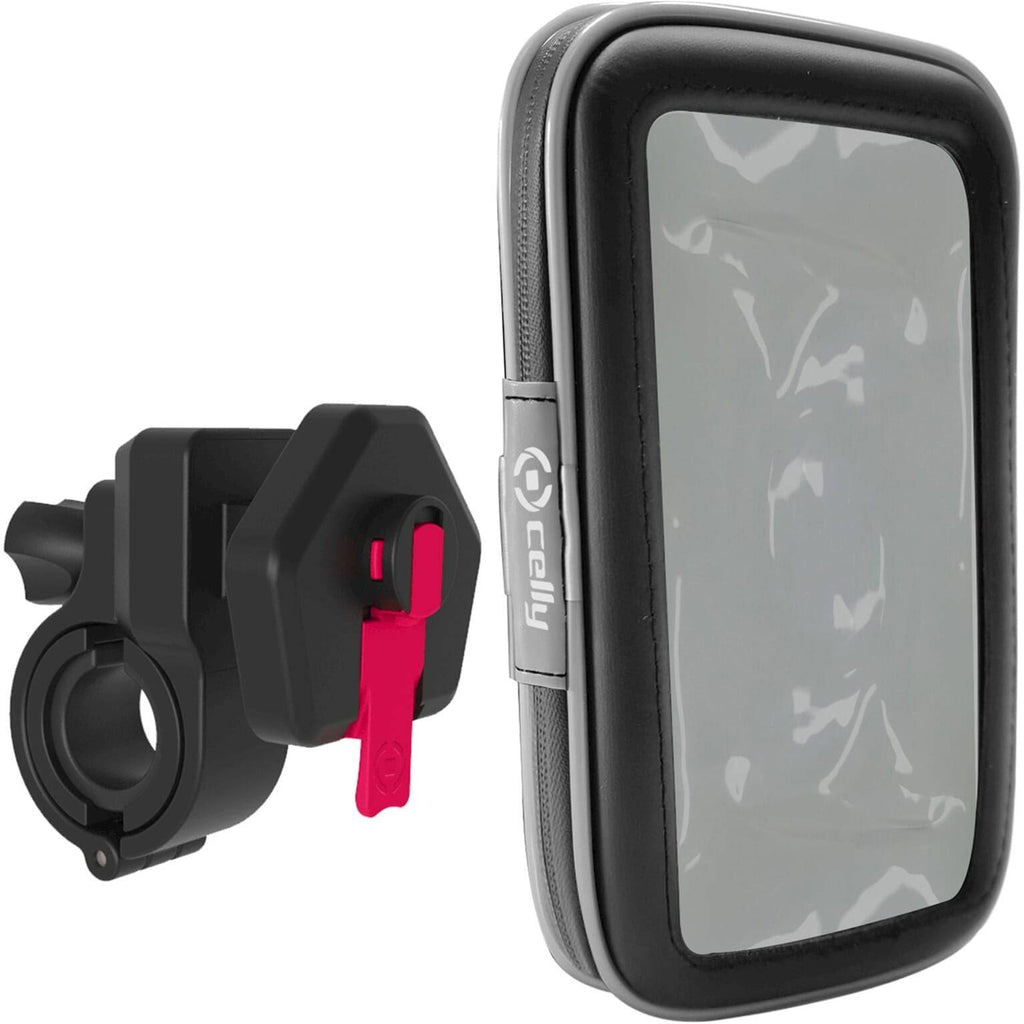 Het Snap-ecosysteem is ontworpen om ieder type telefoon op de fiets te bevestigen. Geschikt voor elk type weg, dus geschikt voor zowel e-bike fietsers, race- en gravel fietsers, maar ook voor mountainbikers. Plak eenvoudig het stevige bevestigingsplaatje aan op een willekeurige telefoon of telefoonhoes, en draai en klik de telefoon vervolgens vast in het beveiligde vergrendelsysteem aan de houder. De houder plaats je aan je stuur is compatibel voor alle maten sturen. Ook geschikt voor e-scooters. De montagekop is verstelbaar waardoor de telefoon exact in de gewenste positie op het stuur bevestigd kan worden. Zowel in de verticale- als de landscape-modus dus. Bij de telefoonhouder zit een universele waterdichte telefoonhoes (max. 6,9'') die je op de houder kunt vastklikken. De touch-functie van de smartphone blijft behouden door de transparante hoes heen. Er zit hiernaast één universeel bevestigingsplaatje inbegrepen in de verpakking, die op een telefoon of standaard telefoonhoesje geplakt kan worden. Dit product biedt dus twee bevestigingsopties, de houder rechtstreeks bevestigd aan de mobiel of een eigen standaard telefoonhoesje of bevestigd aan de waterdichte Celly Snap telefoonhoes.