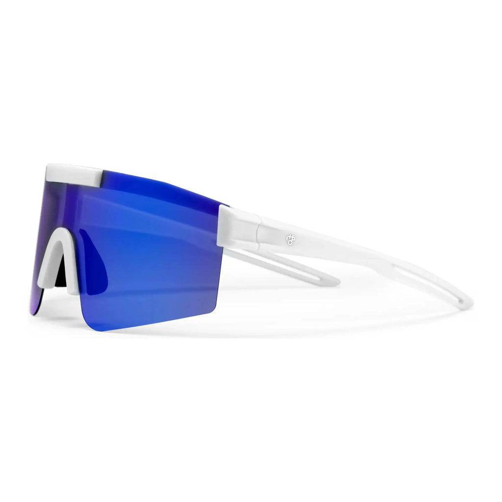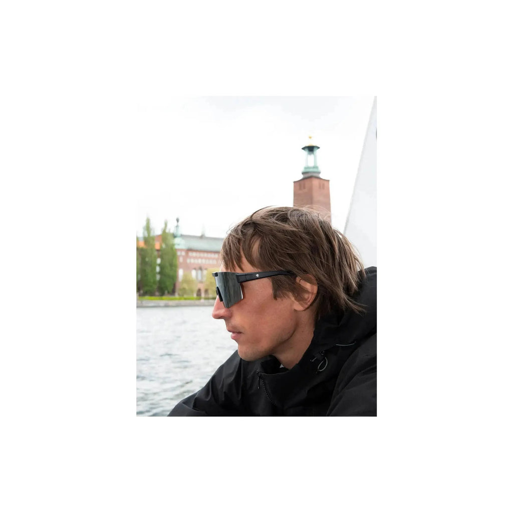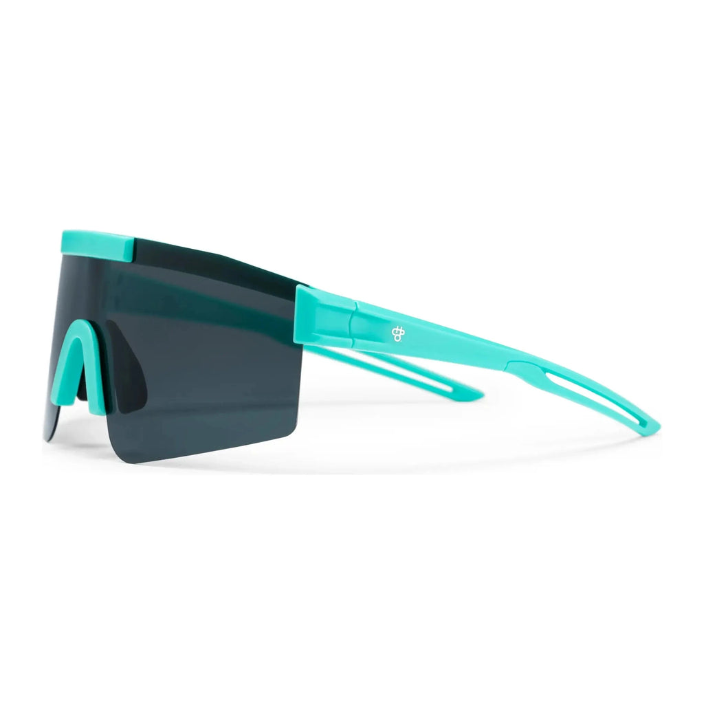Luca, voor degenen die niet willen kiezen tussen fashion of sport. Perfect voor buitenavonturen. Wordt geleverd met een gepolariseerde lens en een oversized maar lichtgewicht turquoise montuur gemaakt van 100% gerecycled plastic.