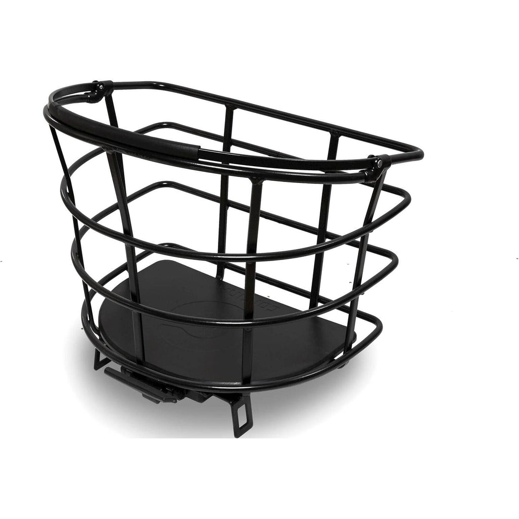 Cortina Mand Tokyo AVS zwart halfrond. Metalen half ronde mand met kliksysteem geschikt voor AtranVelo System (AVS) en passend op de Cortina Common voor- en achterdrager. Met soft grip handvat in mat zwart. Gemaakt van licht aluminium. Afmeting lxbxh 40x32x26. 30L. Hoogte aan stuurzijde 23cm. Dit model is minder geschikt om in combinatie met de AVS adapter op een standaarddrager te bevestigen en niet passend op de E-Octa achterdrager. Inlays voor de mand zijn los verkrijgbaar.