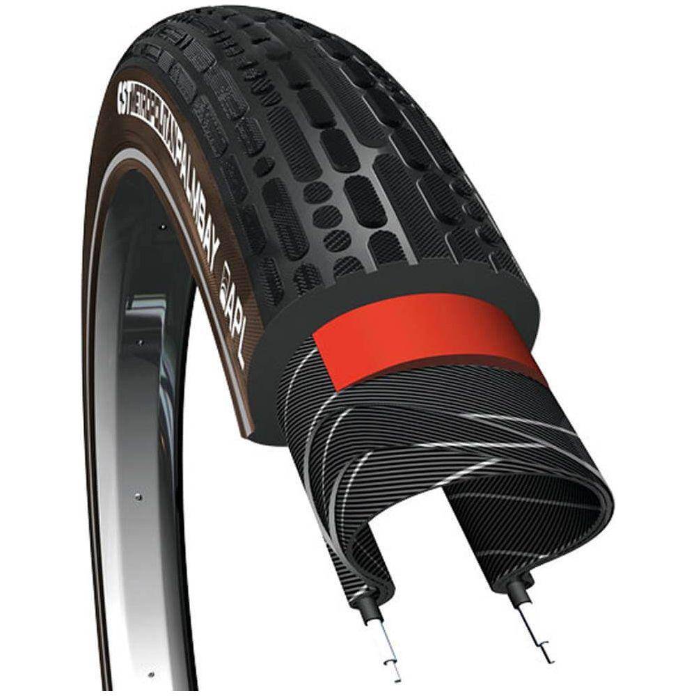 CST buitenband Palmbay R Zwart/Bruin 28x2.00/50-622. De Palmbay past perfect bij een stadsfiets of transportfiets. Het is een iets bredere band, waardoor hij niet alleen lichter loopt, maar ook extra comfortabel is. De band zelf geeft namelijk extra vering. Hierdoor loopt hij lekker licht