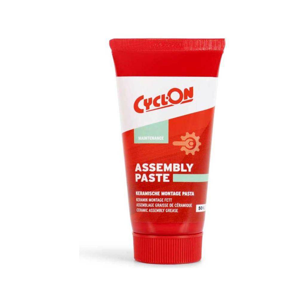 CyclOn Assembly Paste is een keramische montagepasta. De speciale structuur van de pasta zorgt voor een verzadigde verbinding tussen schroefdraad van metalen onderdelen. CyclOn Assembly Paste voorkomt metaal op metaal frictie en zorgt voor een waterdichte afsluiting waardoor krakende en piepende geluiden voorkomen worden.