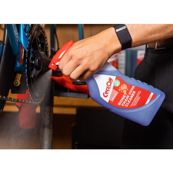 CyclOn Bionet Chain Cleaner is een biologisch afbreekbare ontvetter voor het reinigen van ketting, crankset, cassette en derailleur. De unieke formule weekt olie- en vetresten los en verwijdert aangekoekt straatvuil, maar behoudt interne beschermende vetten. Dit verbetert het schakelgedrag en verlengt de levensduur van de onderdelen. CyclOn Bionet Chain Cleaner is veilig voor gevoelige onderdelen als het frame, lagers en afdichtrubbers.