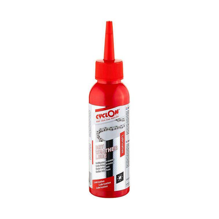 Het Cyclon® Dry Weather Lube smeermiddel is ideaal voor het beschermen van je fiets tegen roest. Onderdelen als je ketting, de derailleurs en schakelsystemen zijn gevoelig voor vocht en met dit smeermiddel bescherm je deze uitstekend. Het vermindert wrijving en dus slijtage, waardoor de fietsonderdelen langer mee gaan. Cyclon® Dry Weather Lube wordt geleverd in een handige druppelflacon, waarmee aanbrengen gemakkelijk is. Gebruiksaanwijzing: Ketting of onderdelen eerst met Cyclon® Bionet ontvetten voor een optimale werking; Cyclon® Dry Weather Lube druppelsgewijs aanbrengen op de scharnierpunten van de ketting en andere onderdelen Inhoud: 125ml