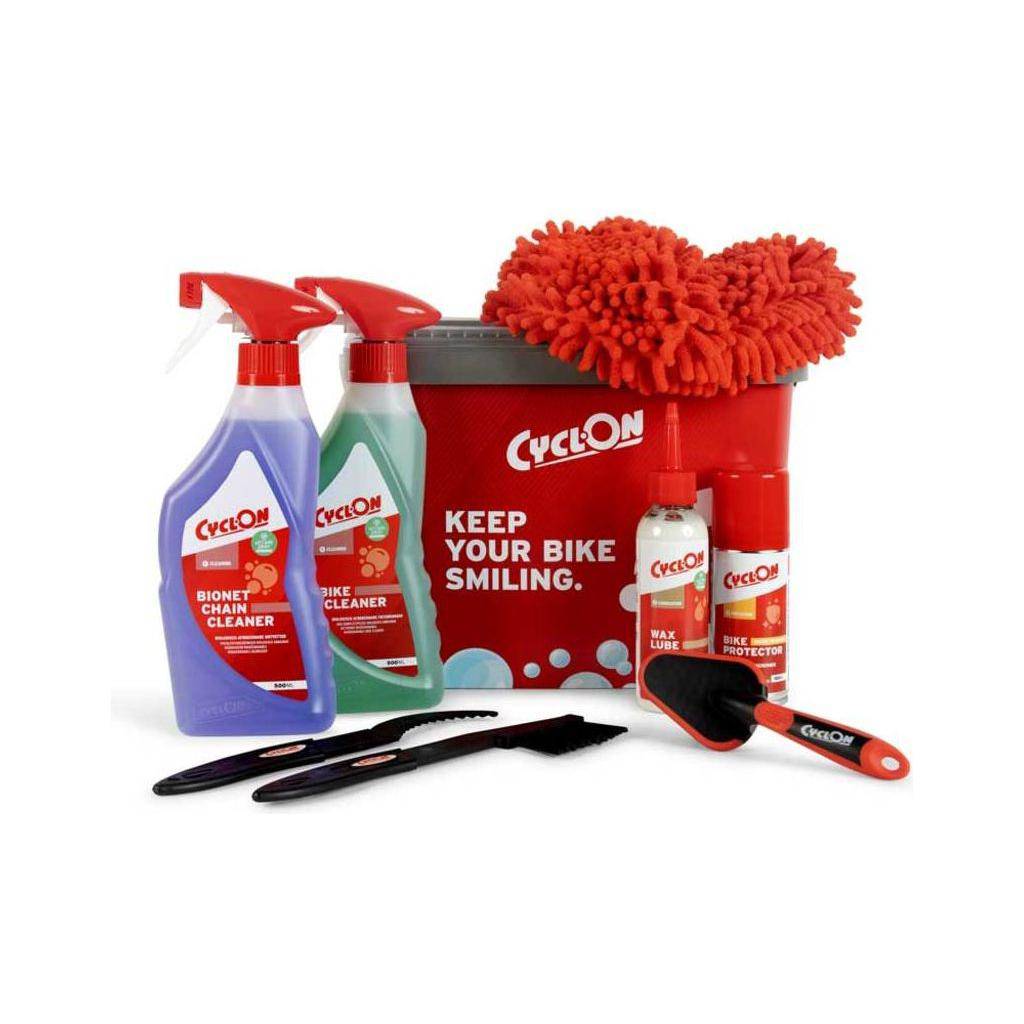 De complete onderhoudsset voor het onderhouden en schoonmaken van jouw smerige racefiets, mountainbike of andere fiets. Deze set maakt schoon, beschermt en smeert je hele fiets. De set bevat: een kettingreiniger, fietsreiniger, smeermiddel, beschermmiddel en borstelsetje voor de ketting.