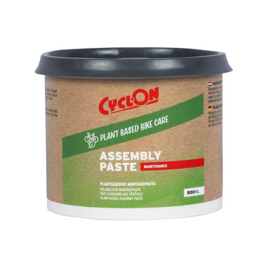De CyclOn Plant Based Assembly Paste is een plantaardige keramische montage pasta voor het monteren van onderdelen met schroefdraad. De montagepasta voorkomt metaal op metaal frictie en vergemakkelijkt het demonteren van onderdelen. Daarnaast zorgt het voor een waterdichte afsluiting waardoor krakende en piepende geluiden voorkomen worden.