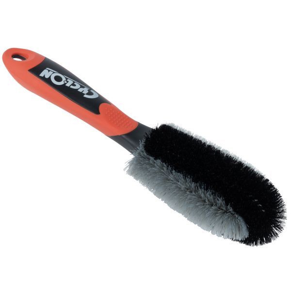 Cyclon® borstel voor wielen en onderdelen. Gemaakt voor het gemakkelijk reinigen van velgen en spaken. De borstel is gemaakt van duurzame kunststof haren en heeft rubberen randen voor een optimale bescherming van uw fiets, de onderdelen en de lak.