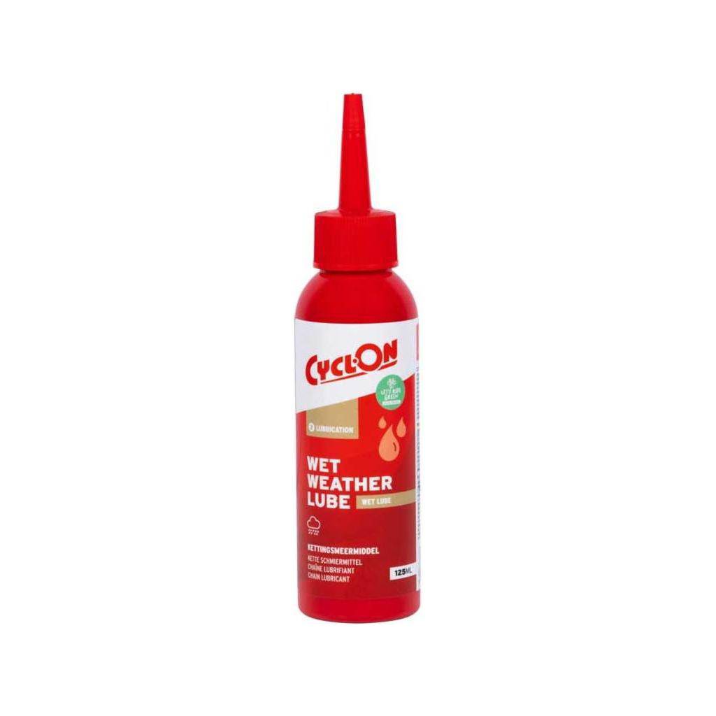 Het Cyclon® Wet Lube smeermiddel is ideaal voor het beschermen van de ketting van je mountainbike tegen roest. Het zorgt voor een langdurige bescherming van de schakels, die toch al voortdurend blootgesteld worden aan extreem veel vuil en natte omstandigheden. Het middel verdrijft vocht, waardoor het je ketting beschermt tegen corrosie. Het verhoogt bovendien de soepelheid van het schakelen. De ketting blijft soepel, ook nadat de smeerfilm al vervuild is. Cyclon® MTB Lube wordt geleverd in een handige druppelflacon, waarmee aanbrengen gemakkelijk is. Gebruiksaanwijzing: Ketting of onderdelen eerst met Cyclon® Bionet ontvetten voor een optimale werking; Voor gebruik goed schudden; Druppelsgewijs aanbrengen op de ketting of onderdelen. Inhoud: 125ml