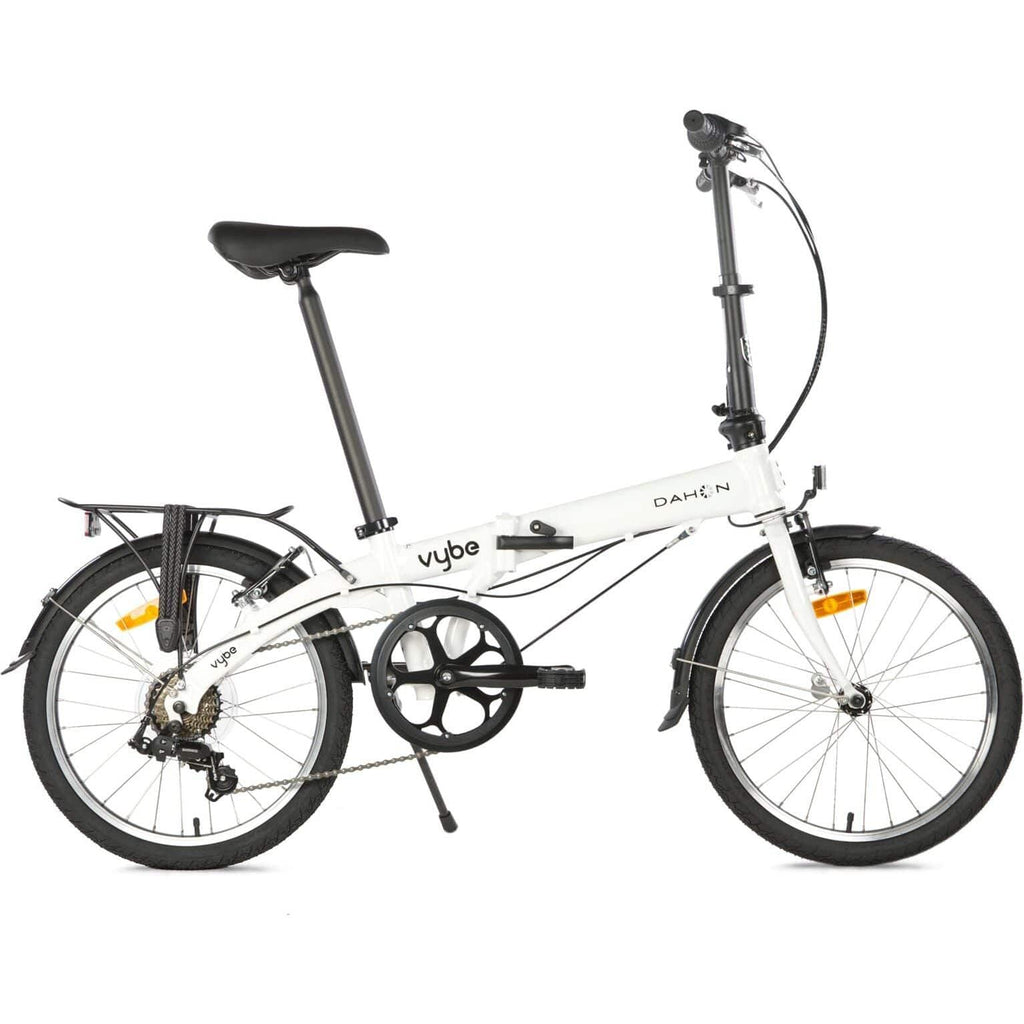 De Dahon Vybe D7 cloud vouwfiets heeft een rechte aluminium framebuis met verstelbaar stuur en 20" wielen. De vouwfiets is verder uitgerust met een Shimano 7-speed Revo twist derailleur, Dahon banden, een aluminium drager met binders en V-brakes. Comfortabel, toegankelijk en gemakkelijk vouwbaar. Kleur: wit. Gewicht 12,6kg. Opgevouwen maat: H:80 x L:34,5 x W:66,5 cm. maximaal toelaatbaar gewicht 105kg. (Dit gewicht is het totaal van berijder plus bagage)