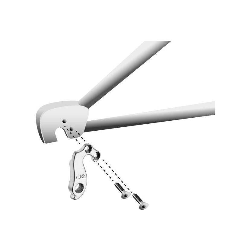 Aluminium derailleurpad, geschikt voor o.a. de volgende fietsmerken: Bergamont, BH, Bianchi, BMC, Bulls, Canyon, Carrera, Cube, De Rosa, Decathlon, Eddy Merckx, Ghost, Grossmann, Haibike, Hercules, Ideal, KHS, Kuota, Lapierre, Marin, MBK, Pinarello, Red Bull, Ridley, Simplon, Schwinn, Sinus, Staiger, Stevens, Univega, Winora en veel andere merken. Materiaal: AL 6061 aluminium, koudgesmeed Levering omvat: derailleurpad incl. bevestigingsschroef