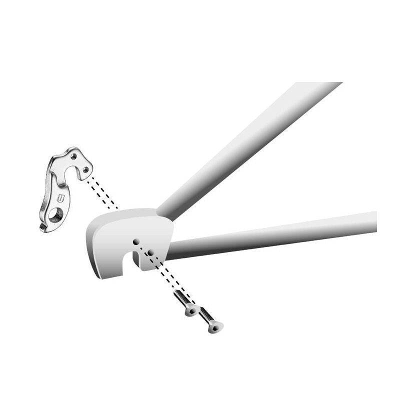 Aluminium derailleurpad, geschikt voor o.a. de volgende fietsmerken: Ghost Materiaal: AL 6061 aluminium, koudgesmeed Levering omvat: derailleurpad incl. bevestigingsschroef
