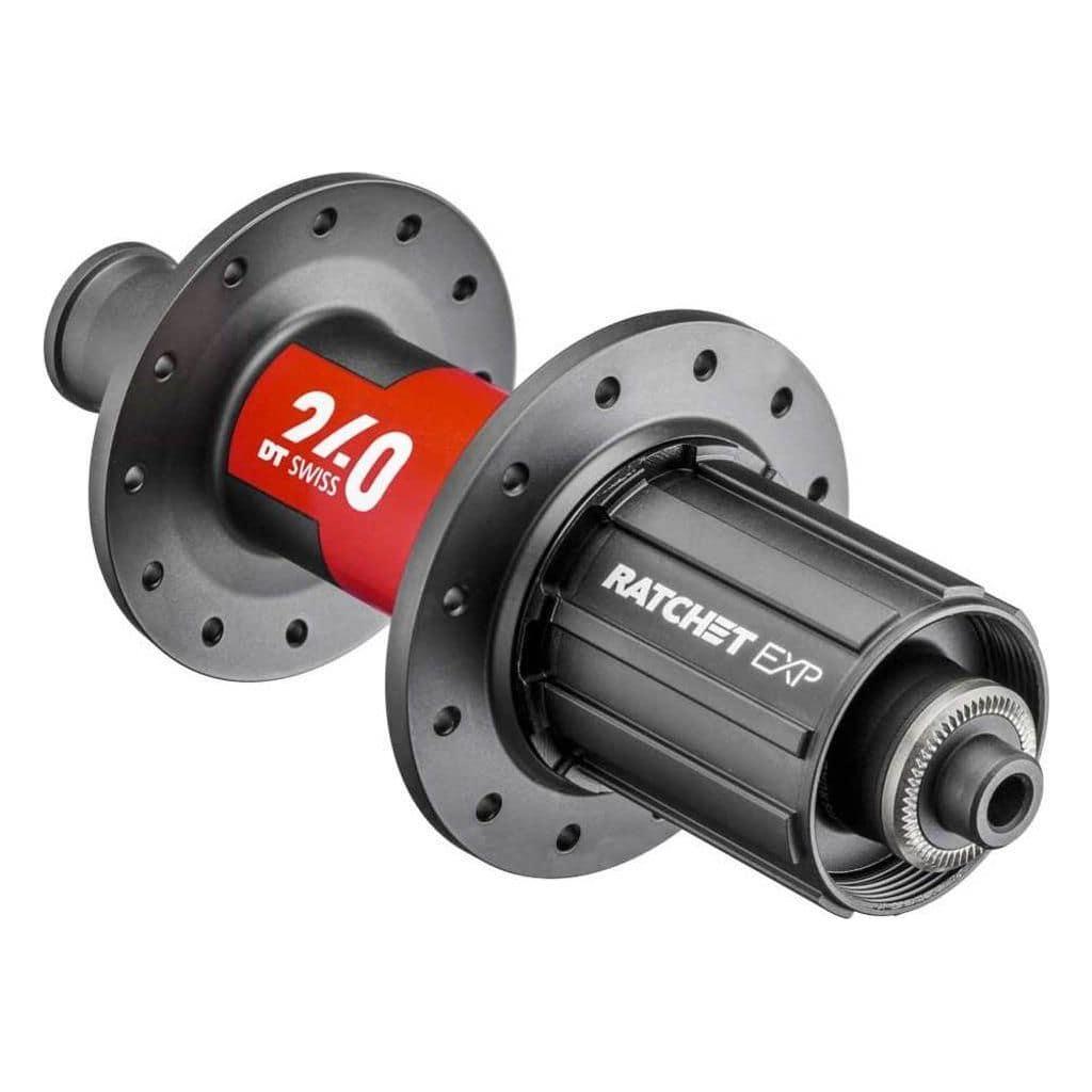 De 240-naaf is al jaren een van de paradepaardjes van DT Swiss. Het wordt wereldwijd gezien als de top in wielnaven voor zowel race als MTB wielen. Aan die superieure kwaliteit is nu een ander staaltje Zwitserse preciesie toegevoegd, de EXP-versie van de Ratchet-technologie. Deze getande ringen in de naaf zorgen bij trapkracht voor de overbrenging van de cassette naar de as in de naaf en bij loslaten van de trapkracht voor de vrijstand, de freewheel. Het eerste grote voordeel van de EXP-versie van Ratchet is dat er minder onderdelen zijn en handafneembare eindkappen. Dit betekent minder gewicht, minder slijtage en eenvoudiger onderhoud. Daarnaast biedt het meer contactoppervlak waardoor de aandrijving van de body naar de achteras degelijker en preciezer verloopt. Tevens is de afstand tussen de linker en rechter naaflager groter en dat zorgt voor een betere krachtverdeling en stijfheid. De 240 EXP-naaf is in vele varianten beschikbaar, de keuze wordt bepaald door het type wiel (race of MTB), door de spaakvoering (Classic of straightpull plus het aantal spaken), het type rem (6-bouts, centerlock of velg) en de gewenste body voor de cassette (SRAM, Shimano, Campagnolo).