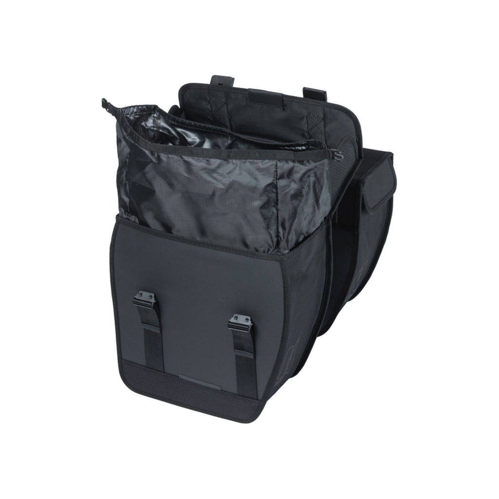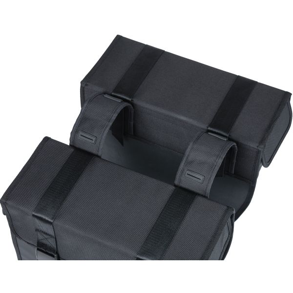 De Basil Tour is een stijlvolle en functionele dubbele fietstas met een ruime inhoud van 35 liter. Deze zwarte fietstassen combineren een strak ontwerp met praktische eigenschappen en zijn geschikt voor zowel dames- als herenfietsen. Dankzij de afgeronde voorzijde behoud je optimale bewegingsvrijheid tijdens het fietsen, terwijl de stevige constructie zorgt voor langdurig gebruiksgemak.