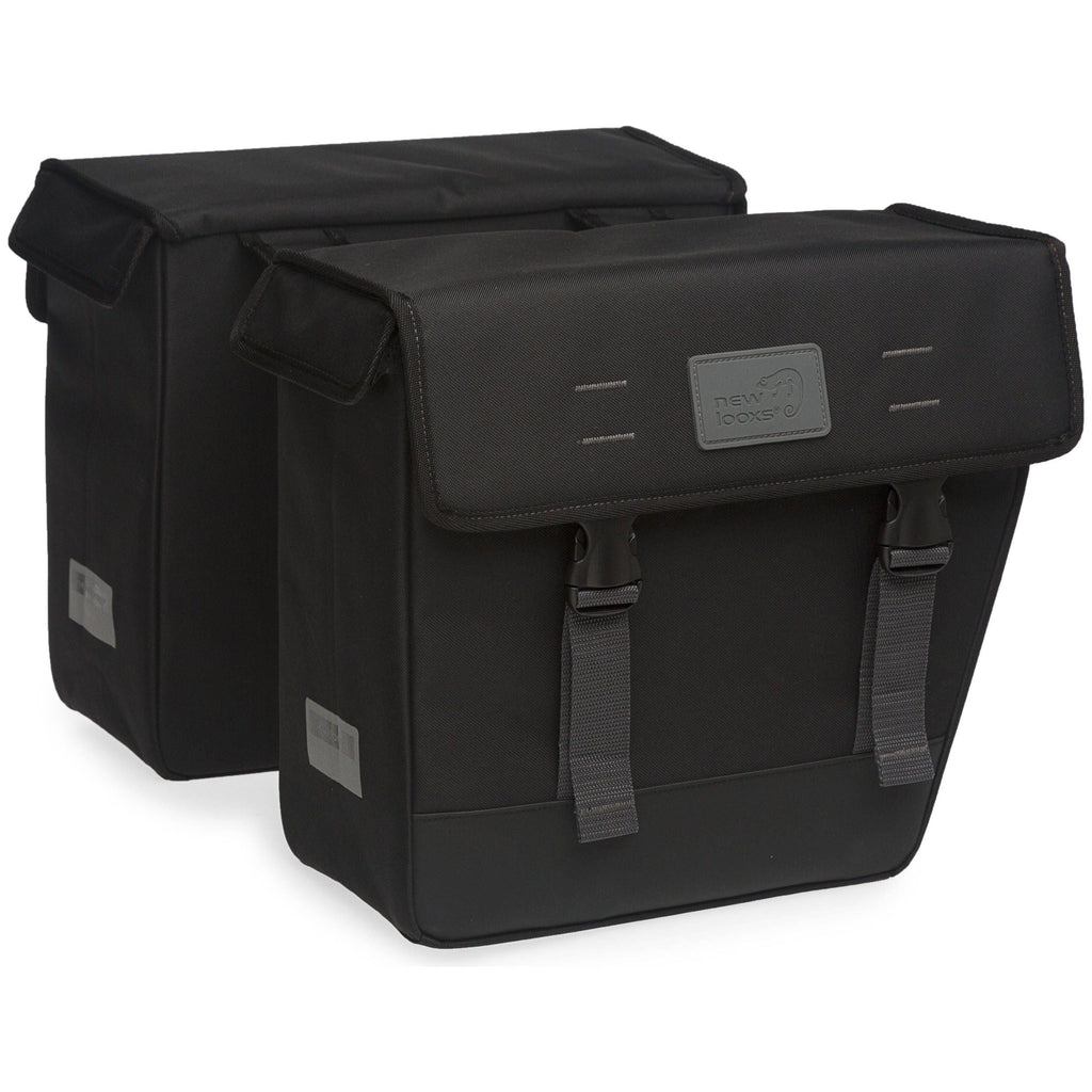 Stevige dubbele fietstassen, afgeschuind zodat je niet tegen de tas aan trapt. Deze stevige dubbele tas past op bijna alle fietsen, ook elektrische.
