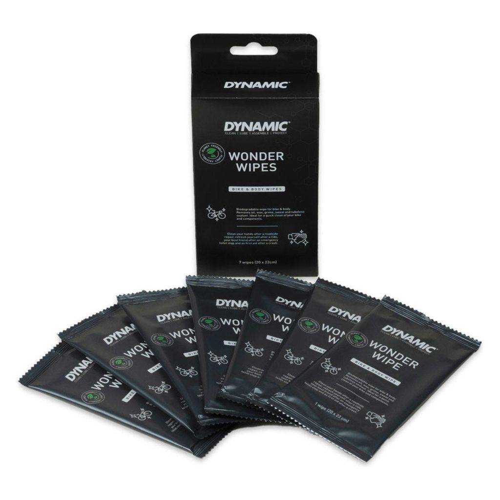 De Dynamic multifunctionele schoonmaakdoekjes zijn idaeal voor het snel en veilig schoonmaken van de handen en fiets(componenten). Ze zijn compact en individueel verpakt; idaeal dus om mee te nemen onderweg! De doekjes verwijderen olie, wax, vet, zweet en zelfs tubeless sealant! Gemaakt van biologisch afbreekbare cellulose (Bamboe).