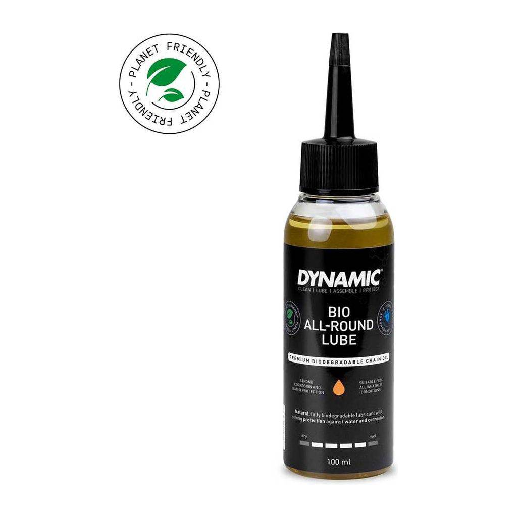 Dynamic Bio All round lube is een hoogwaardig smeermiddel dat de wrijving in uw aandrijflijn vermindert en helpt om soepeler te schakelen. De premium formule is geoptimaliseerd om bewegende delen te beschermen tegen water en corrosie. Door het hoge kruipvermogen dringt de olie snel door in elke schakel van de ketting.