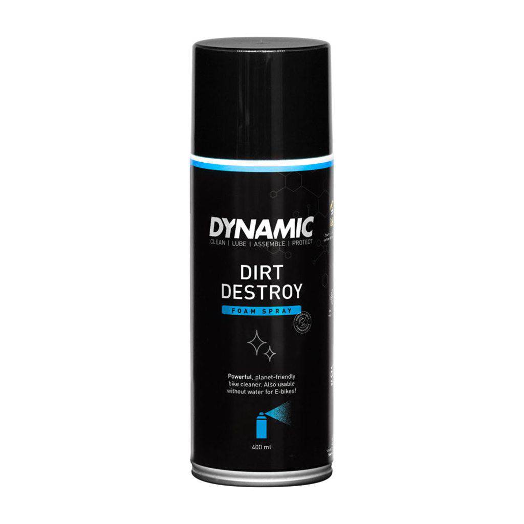 De Dynamic Dirt Destroy foamspray maakt het mogelijk om zowel fiets als uitrusting in een handomdraai te reinigen. Het is een populair product voor een snelle schoonmaakbeurt. Even insprayen en de milieuvriendelijke foam doet het werk. Dirt Destroy vernietigt het vuil en beschermt de fiets en toebehoren. Veilig te gebruiken op glanzende en matte frames en op materialen als textiel, rubber, carbon, aluminium en staal.