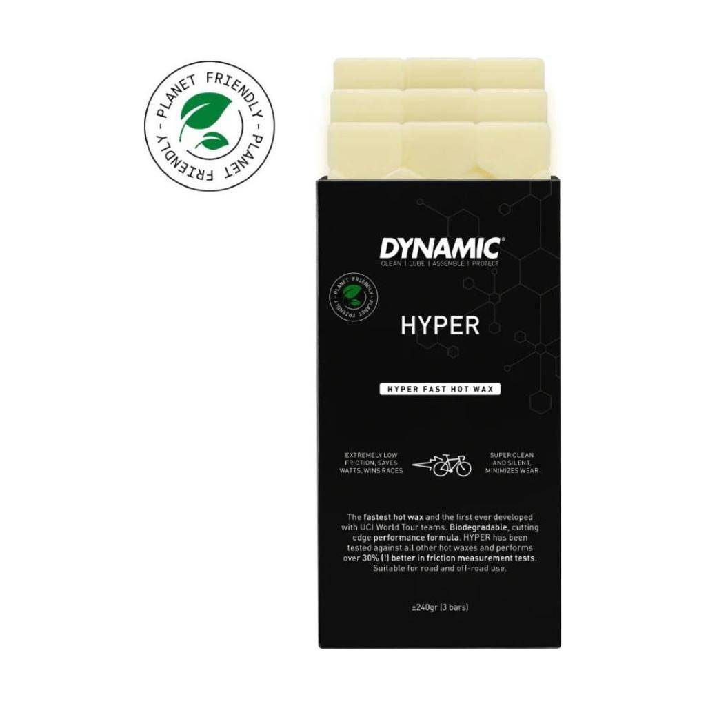 Hyper is de snelste hot wax en de eerste die is ontwikkeld met UCI World Tour-teams. Daarnaast is het ook de enige biologisch afbreekbare hot wax in de wereld. Hyper presteert meer dan 30% beter dan andere hot waxen in alle labtesten die zijn uitgevoerd door Dynamic.