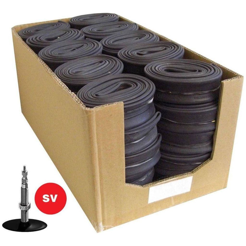 50 binnenbanden van in werkplaats voordeelverpakking. Product Specificaties: Ventiel: Frans (SV, Sclaverand) Geschikt voor onderstaande bandenmaten: 32-630 - 27 x 1 1/4 40-609 - 27 x 1 1/2 40-635 - 28 x 1 1/2 - 700 x 38B 32-622 - 28 x 1.25 - 700 x 32C 33-622 - 28 x 1.30 - 700 x 33C 35-622 - 28 x 1.35 - 700 x 35C 37-622 - 28 x 1.40 - 700 x 35C 37-622 - 28 x 1 3/8 - 700 x 35C 32-622 - 28 x 1 5/8 x 1 1/4 - 700 x 32C 37-622 - 28 x 1 5/8 x 1 3/8 - 700 x 35C 40-622 - 28 x 1.50 - 700 x 38C 42-622 - 28 x 1.60 - 700 x 40C