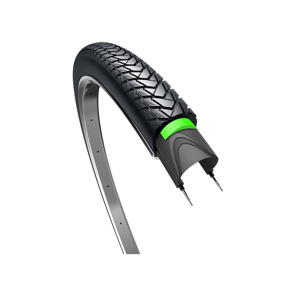 Heerlijk (e-)biken over geplaveide én ongeplaveide wegen? Onze Edge Traveller draait om zijn as alsof er niets aan de hand is! Deze dynamische middenklasserband met ultramodern profiel rolt licht en houdt een goede grip op de ondergrond, óók bij hoge snelheden. En de lekbescherming? Doordat deze band uitgevoerd is met een 3mm dikke anti-leklaag, is de lekbescherming bij alledaags gebruik zeer betrouwbaar.