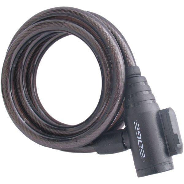 Handig spiraalslot van Edge, geleverd met framebevestiging. Geleverd inclusief twee sleutels. Details: Water en vuilwerende cilinder. Zachte kunststof afwerking Dikte ketttingschakels: ø12 mm Lengte: 180 cm Kleur: zwart