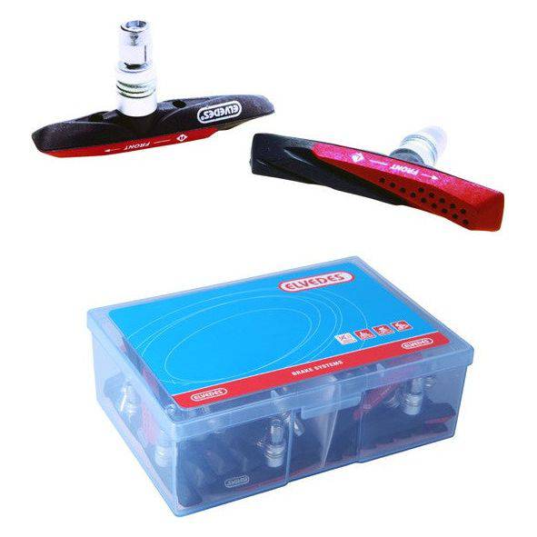 Werkplaatsverpakking met 25 paar Elvedes v-brake rembloksets met inbusbevestiging. Specificaties Type: Dual Compound (voor natte en droge omstandigheden) Maat: 72 millimeter Remsoort: V-brake met inbusbevestiging