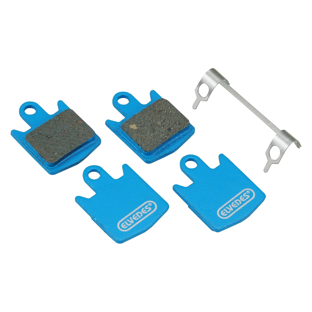2 Paar Organische Schijfremblokjes voor Hope M4 Binnen het Elvedes assortiment vind je vrijwel alle gangbare schijfremblokjes en met Elvedes kies je voor een goede prijs-/kwaliteitverhouding. Gebruik het stalen Elvedes Discovery display met 60 vakjes in de werkplaats zodat je altijd de juiste remblokken binnen handbereik hebt. Compound Compounds zijn gemaakt uit verschillende materialen. Iedere compound heeft zijn voor- en nadelen. Binnen het assortiment van Elvedes is er keuze uit drie verschillende compounds die een hoge remkracht bieden voor elke fiets en iedere weerconditie. Organisch Ideaal tijdens droge omstandigheden Voor MTB / trekking / racefietsen Gesinterd Ideaal tijdens natte omstandigheden Voor MTB Metallic carbon (semi-metaal) Ideaal tijdens zowel natte als droge weersomstandigheden Voor e-bike Levensduur Na de montage van de nieuwe remblokken is het zeer belangrijk dat de blokjes ingeremd worden, dit verlengd de levensduur. Inremmen Hoe verbeter je de levensduur van je schijfremblokjes: Het inremmen van nieuwe schijfremblokjes verlengd de levensduur aanzienlijk! Houdt de remhevel licht aangetrokken terwijl je rijd en zorg ervoor dat de remblokjes de remschijf raken. Rijdt ongeveer 100 meter met een snelheid van 25 kilometer per uur en rem aan het eind wat harder om de snelheid terug te brengen tot circa 5 kilometer per uur. Vervolgens langzaam de snelheid verhogen terwijl je lichtjes remt. Herhaal dit 10 á 12 keer om er voor te zorgen dat je nieuwe remblokjes goed ingeremd zijn.