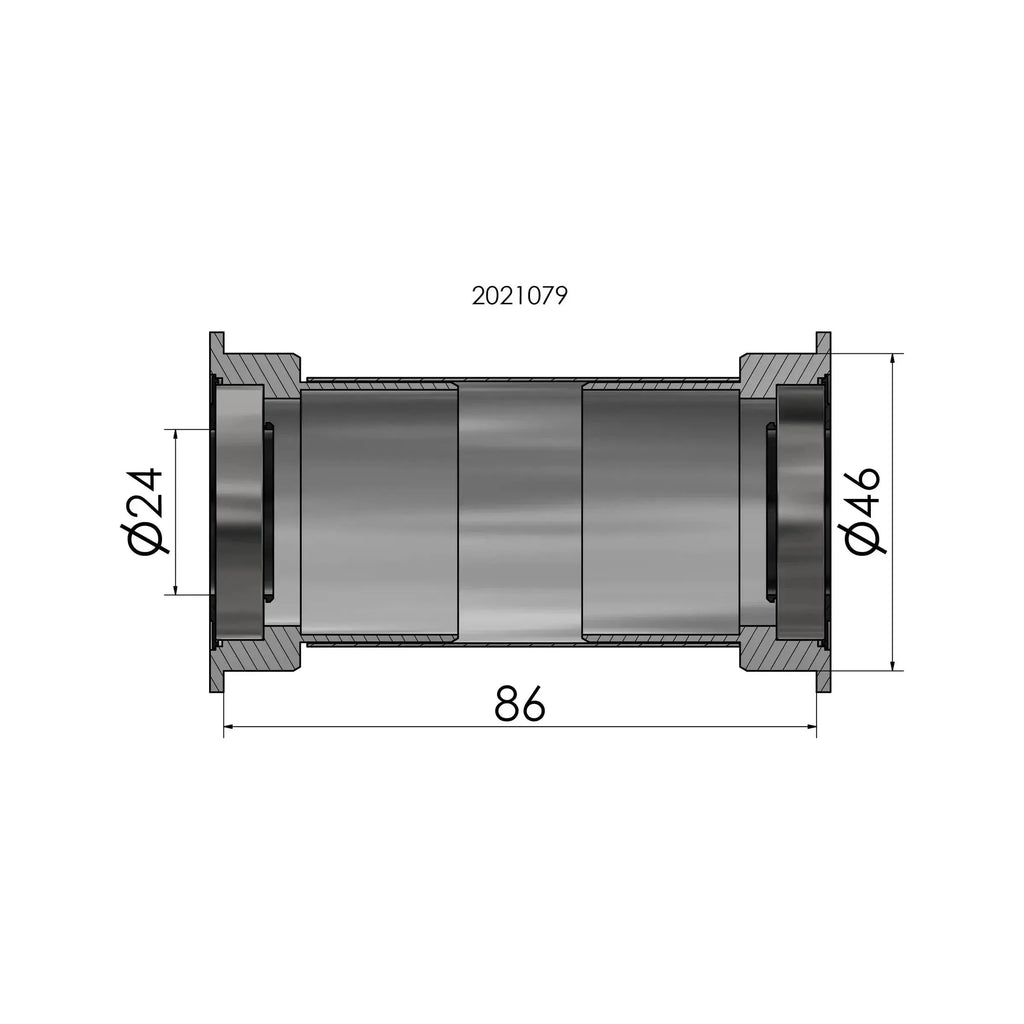 • Elvedes bottom bracket trapas adapter Press Fit, diameter 46mm BB386 breedte 86mm Shimano 24mm