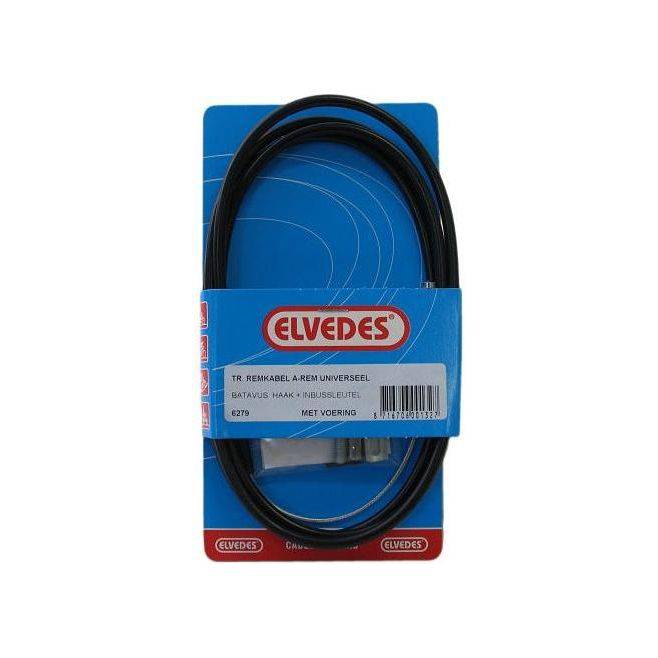 Trommelremkabel achterrem Elvedes met haak (universeel) met Batavus haak en inbussleutel met voering Materiaal: RVS Lengte buitenkabel: 1700 mm Lengte binnenkabel: 2250 mm