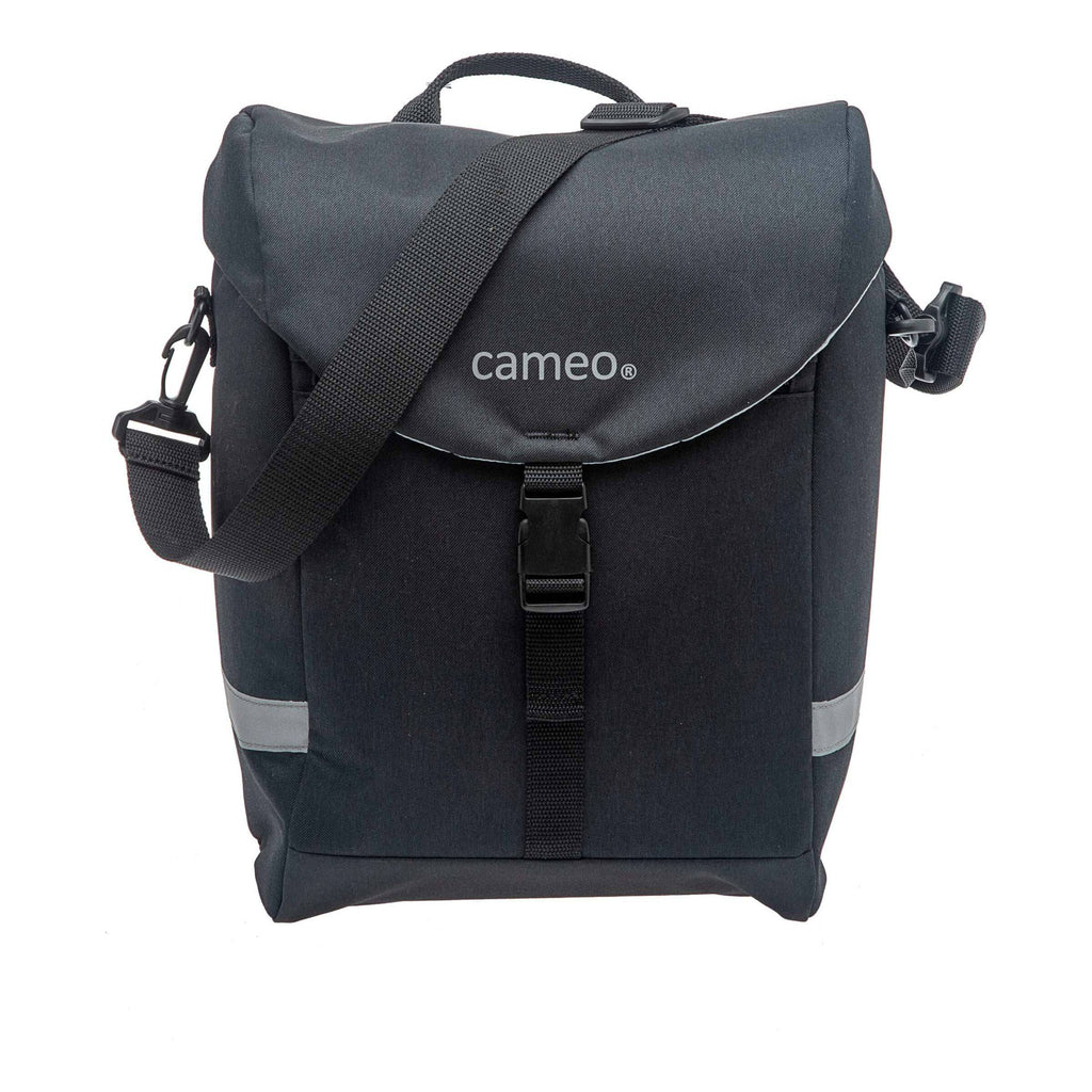Inhoud: 14 liter de cameo sports bag single is een sportieve tas voor achterop de fiets. Deze enkele fietstas is uitgevoerd in de kleur zwart en heeft een grijze binnenvoering. De tas is gemaakt van waterafstotend polyester en voorzien van meerdere reflecterende onderdelen. sportieve fietstas deze tas van new looxs bestaat uit een ruim hoofdvak en één extra voorvak met rits. Handig voor bijvoorbeeld sleutels of uw mobiele telefoon. U sluit de tassen met een aansnoerkoord. Daaroverheen plaatst u de flap, welke u vastzet met een verstelbare klikgesp. praktische paktaftas/ schoudertas u maakt deze fietstas makkelijk vast aan uw bagagedrager met twee fietshaken. Voor extra stevigheid kunt u de tas vastzetten met de klittenband strook. Wanneer u de tas van de fiets neemt, draagt u deze handig met u mee als schoudertas dankzij de afneembare en verstelbare schouderband. past deze fietstas op een elektrische fiets? een fietstas past op de e-bike mits er voldoende ruimte aanwezig is tussen de accu en de bagagedragerbuis. produkt specificaties: afmetingen: 29 x 13 x 36 cm gewicht: 600 gram kleur: zwart inhoud: 14 liter.
