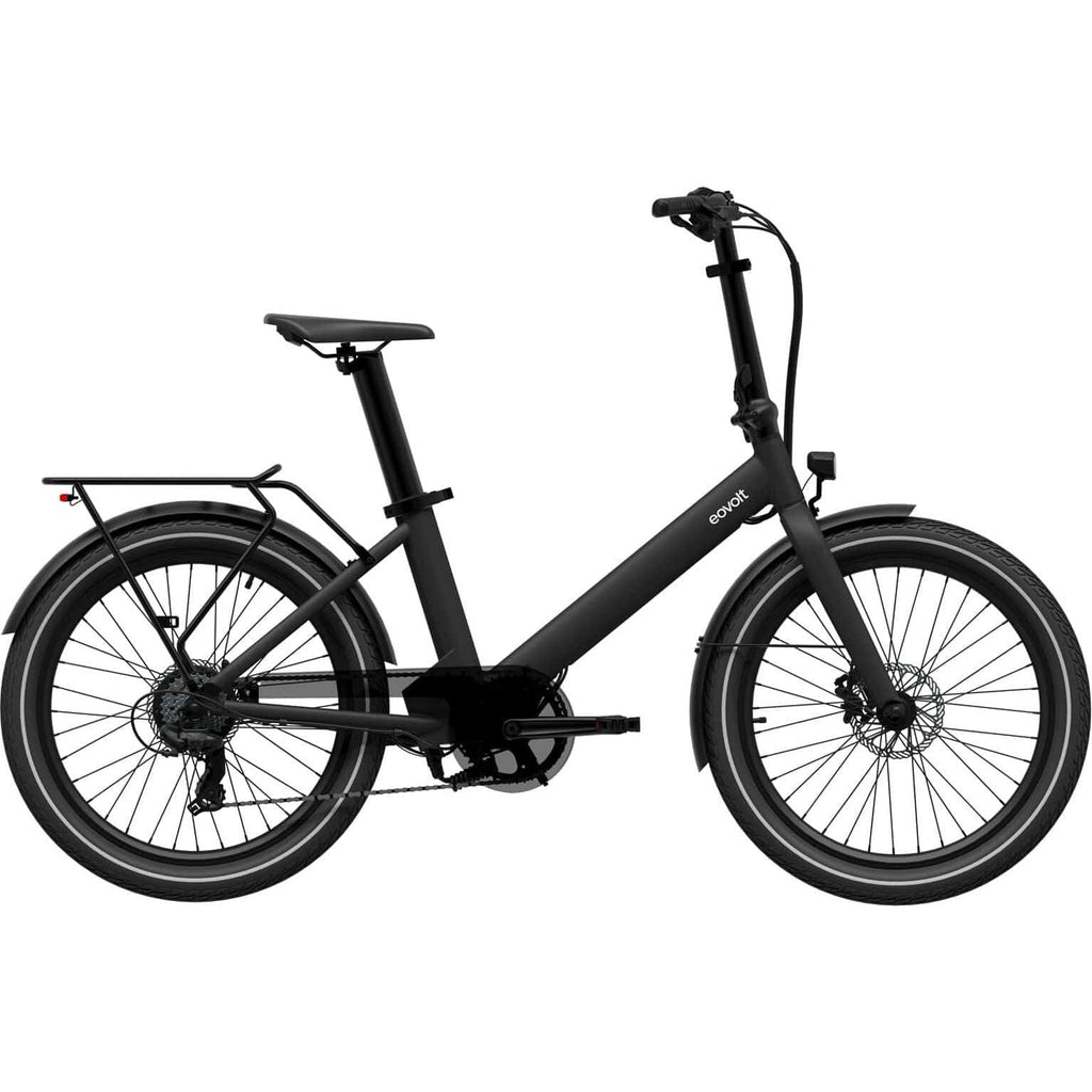 De Eovolt evening: De compacte versie van de stadsfiets. Deze wendbare compact fiets (22,3kg) met 24 inch wielen heeft een range van ongeveer 70km en is door het opvouwsysteem van stuur, zadelpen en pedalen in elke ruimte of gang tot 30 cm breed op te bergen. Naast het strakke design met gladde lasnaden zijn het de details die het verschil maken: gebogen cockpit, achterdrager, hydrolische remmen, 7-speed derailleur, 40Nm 36V 250W achterwielmotor, krachtsensor, uitneembare accu (36V 10.5 Ah) in de zadelpen met anti diefstal zadelklem, inklapbaar stuur, boordcomputer met usb ingang en voor- en achterverlichting. Verkrijgbaar in 5 kleuren: zwart, maangrijs, salie groen, zand en oceaan blauw.