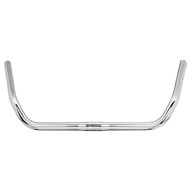 Engels stuur voor gebruik op een transportfiets of stadsfiets. Productspecificaties: Stuurklem diameter: 25,4 mm Breedte: 535 mm Dikte: 1,5 mm Handvatlengte: 165 mm Materiaal: Staal Afwerking: Chroom Gewicht: 584 gram