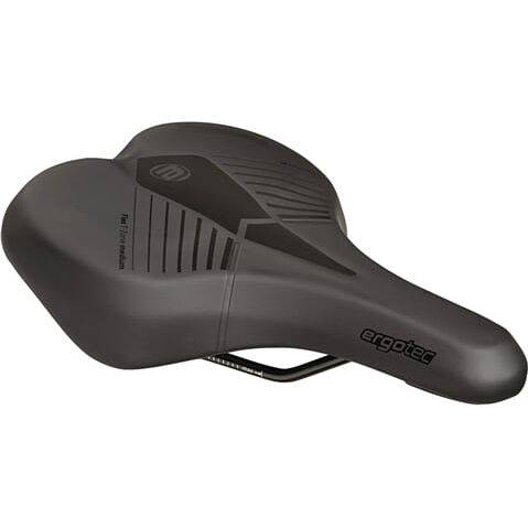 De ES COMFORT PLUS is een bijzonder groot en zacht zadel dat speciaal is ontworpen voor bredere bekkens en mensen die niet vaak fietsen. Op het COMFORT PLUS zadel zit je altijd comfortabel en kunnen er geen drukpunten ontstaan. De ergotec Flex T-Zone past het zadeloppervlak individueel aan naar de anatomie van het menselijk zitvlak, terwijl de ergotec reliëfrand en de ergotec Comfort Cutout het perineum en het schaambeen ontlasten. De extra ergotec-schokdempers dempen oneffenheden en laten de zadelschaal buigen. Het COMFORT PLUS zadel is alleen verkrijgbaar in soft en in één wijdte (XL). Afmeting 260 x 218 mm. de ES COMFORT PLUS is geschikt voor zowel stadsfiets als E-bikes.