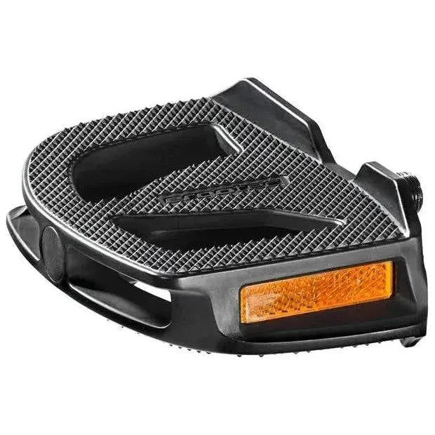 Met zijn grote, ergonomisch gevormde oppervlak omsluit het nieuwe EP-1 pedaal de zool van uw voeten en zorgt voor een optimale krachtoverbrenging. Dit zorgt er ook voor dat problemen zoals gevoelloosheid of pijn in de voet de ideale positie kunnen vinden, die indien nodig individueel kan worden aangepast voor de linker- en rechtervoet. De binnenste geleiderails zorgen voor een perfecte positionering en voorkomen elk contact tussen de voet en de slinger. Zoals het geval is met ergonomische handvatten, zult u de winst in efficiëntie en comfort onmiddellijk opmerken. Eigenschappen: Type fiets: stadsfiets / trekking Kleur: zwart Materiaal: polypropyleen Lagering: Hoogwaardige lagering met afdichting Asmaat: 9/16" Afmeting: 132 x 92 cm Met geïntegreerde reflectoren Gewicht: 420 gram