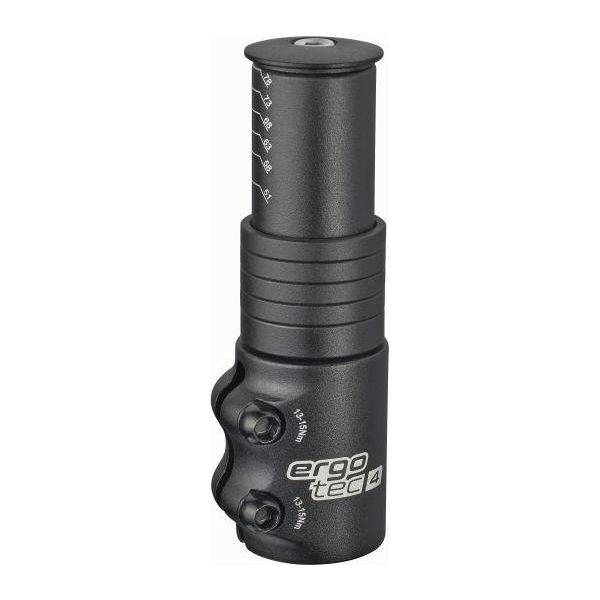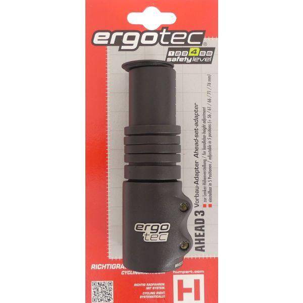 Aluminium Ahead adapter voor 1 1/8 "Ahead stuurpennen met verstelmogelijkheid van 51/58/63/68/73 en 78 mm. Een stuurhoogte verstelsysteem voor Ahead stuurpennen. Nu nog stabieler en geschikt voor e-bikes. Eigenschappen: Materiaal: AL 6061 T6 aluminium Vorkklemming: 28,6 mm / 1-1/8" Klemhoogte: 40 mm Gewicht: 210 gram Afwerking: zwart gezandstraald Veiligheidslevel: 4